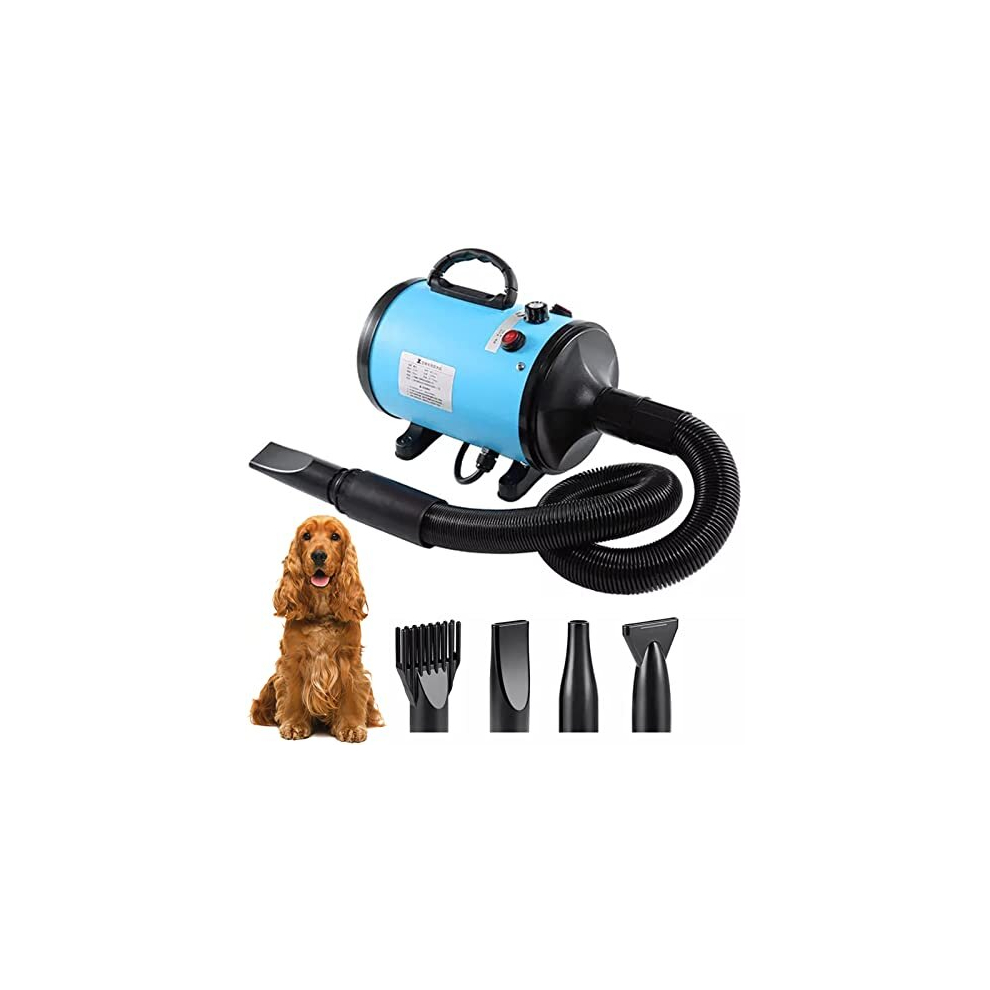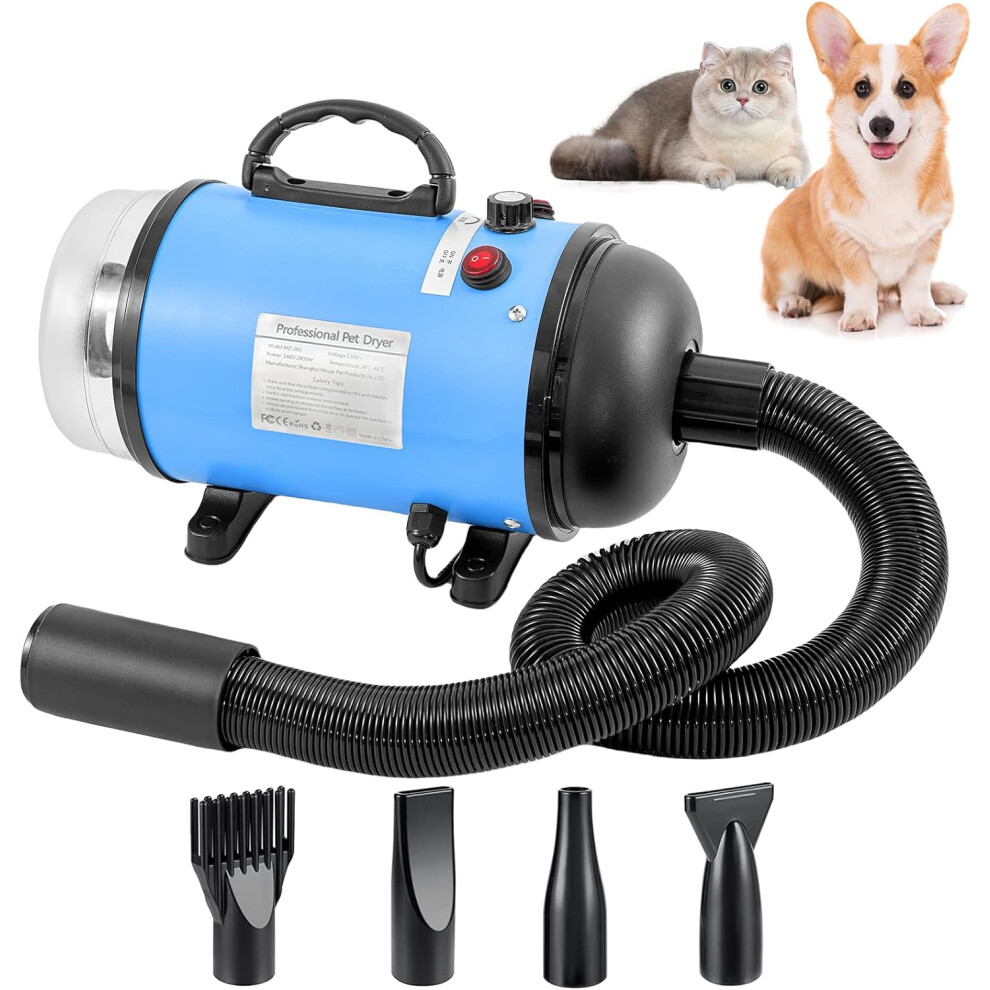 (Blue) Dog Hair Dryer Pet Dog Blaster Dryer Dog Grooming Gryer 2800W Low Noise Temperature Heater with 4 Different Nozzles