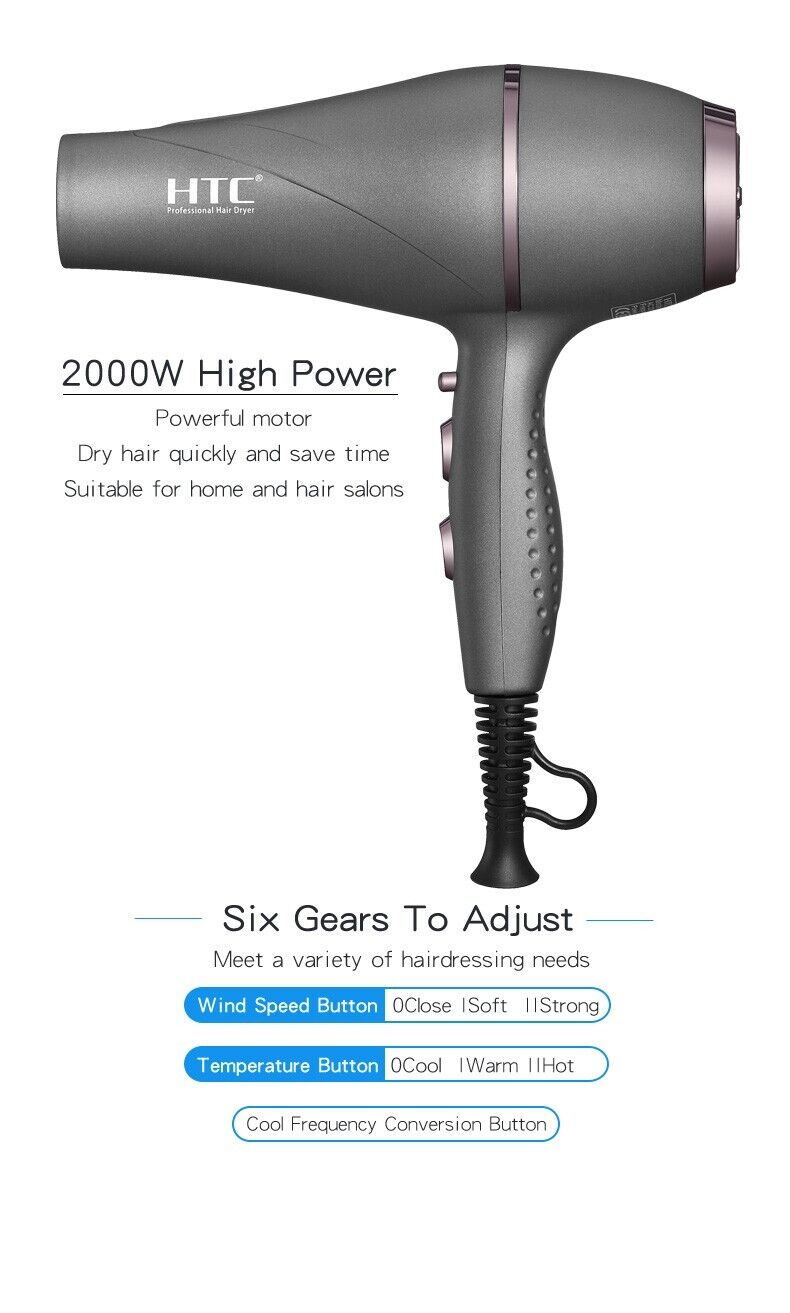 2000W Professional Style Hair Dryer Ceramic Turbo Ionic Blower Pro Salon Heat UK