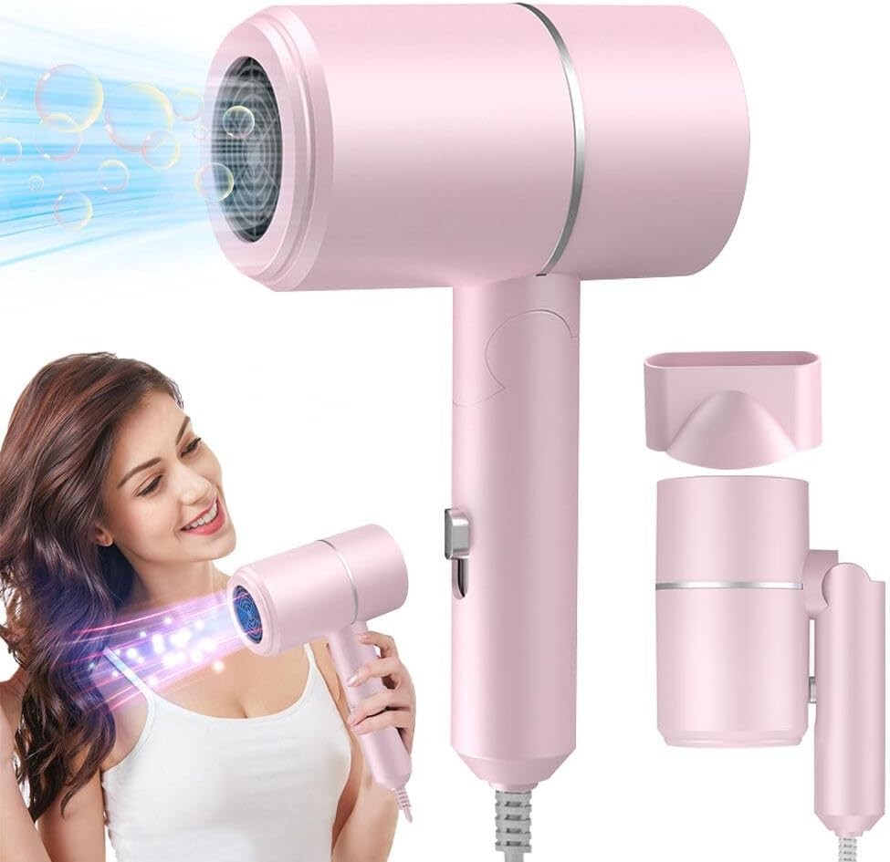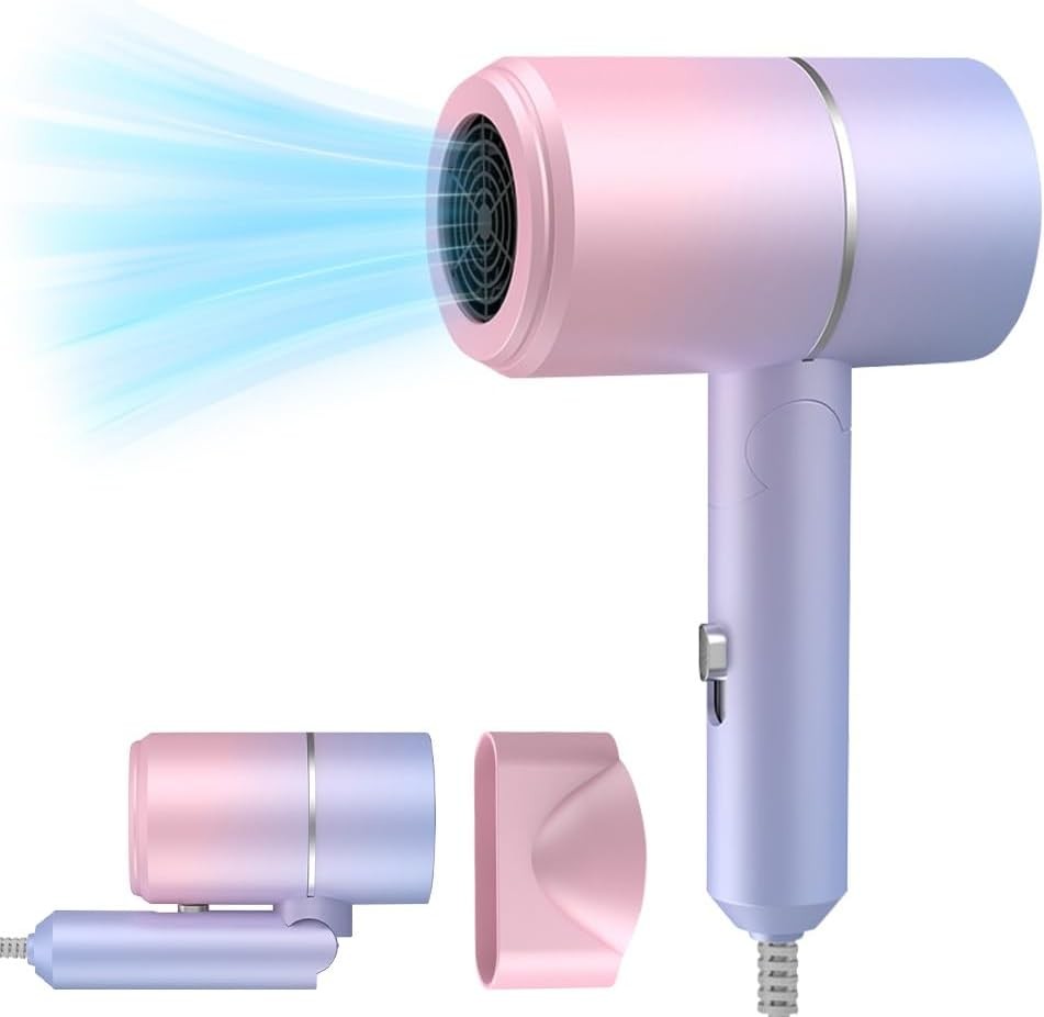 IXYHKB Travel Hair Dryer - Foldable, Ionic, Fast Drying with Hot/Cold Button, P