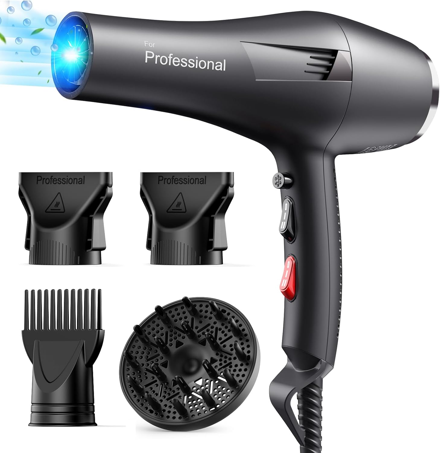 Hair Dryer Professional Ionic Diffuser Hairdryer & Accessories, 2 Speed 3 Heat S
