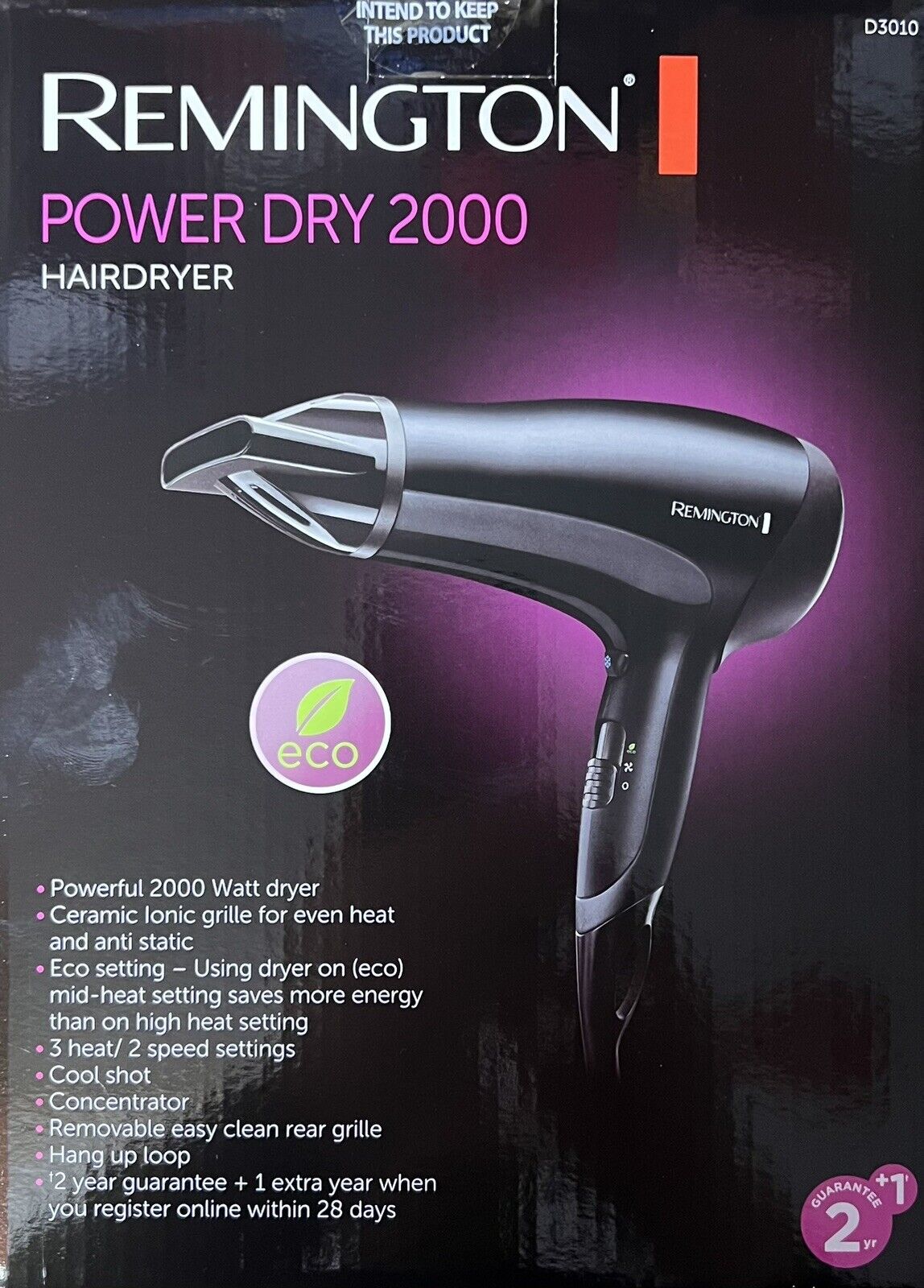 Remington D3010 Power Dry Professional Hair Dryer Ceramic Ionic 2000W NEW