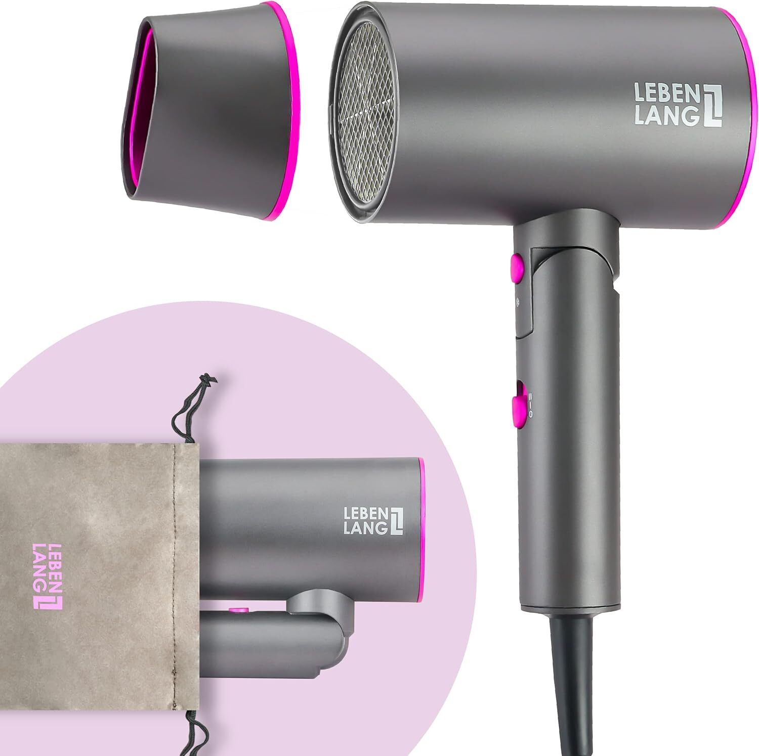 LEBENLANG Hair Dryer Ionic 2100W - Anti-Spliss with Cold Air Mode | Powerful Portable Travel Hairdryers for Women & Men Mens I UK Lightweight Hairdryer Föhn Fön Hair dryers Hair-Dryer Blow Hair Drier