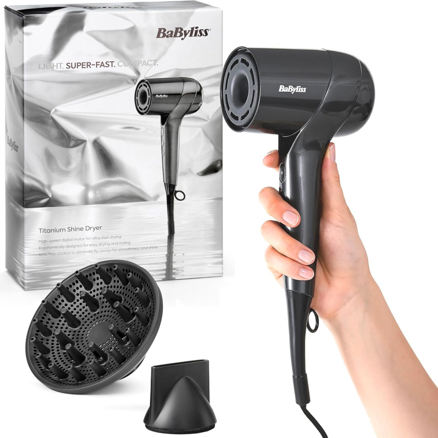BaByliss Titanium Shine Hair Dryer 1600W Ionic Compact Frizz-Free Blow Dryer UK