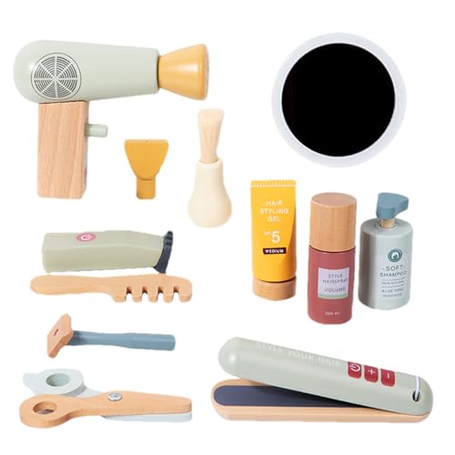 Wood Kids Beauty Salon Toy Set – Hair Styling Pretend Play, Makeup Accessories, Simulation Dryer, Straightener Tools, Interactive Role Play | Girls Creative Fun Gift Birthday Holiday Party