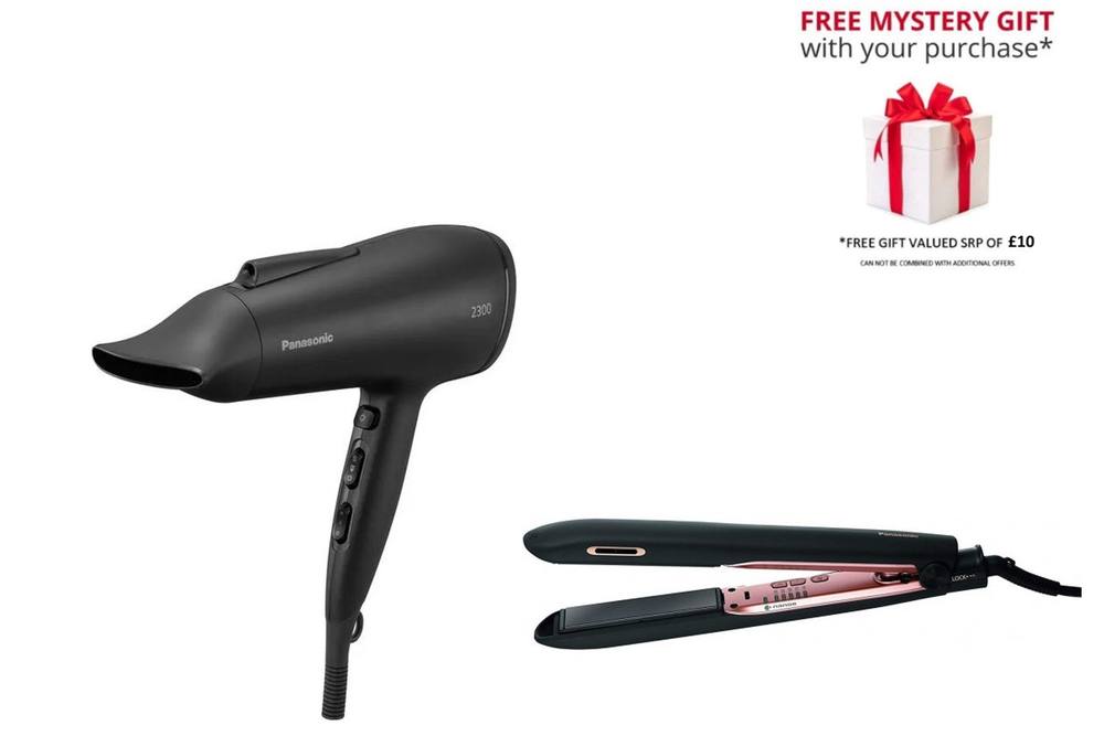 Panasonic EH-NE85, EH-HS99 Hair Dryer & Nanoe Ceramic Hair Straightener Set in Black