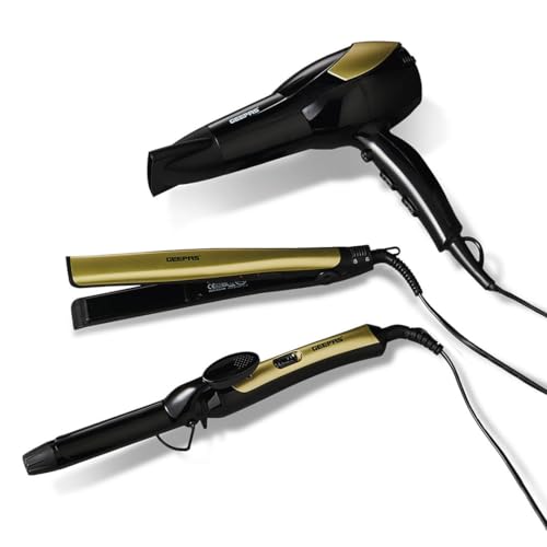 Geepas 3-in-1 Hair Dryer, Curler & Straightener Combo Set | 2200W Hairdryer with 2 Speed & 3 Heat, Concentrator | Hairstyling Tool with PTC Heater, Swivel Cord & Hanging Loop