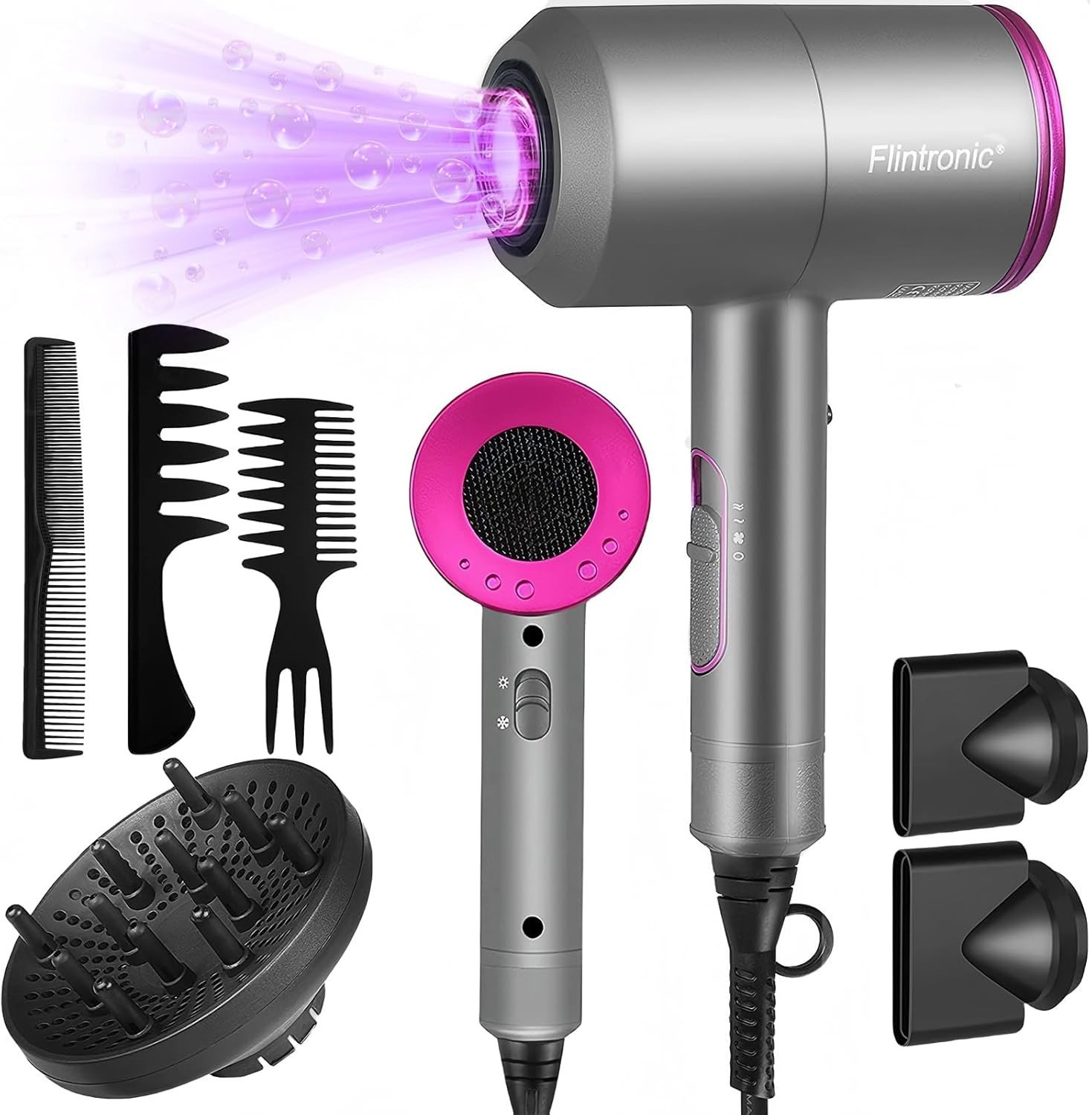 Flintronic 2000W Powerful Ionic Dryer, Hair Dryer with Diffuser & Concentrator,
