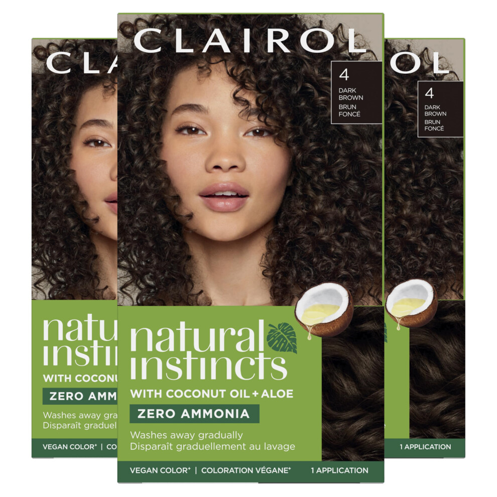 Clairol Natural Instincts Demi-Permanent Hair Dye 4 Dark Brown Hair Color Pack of 3