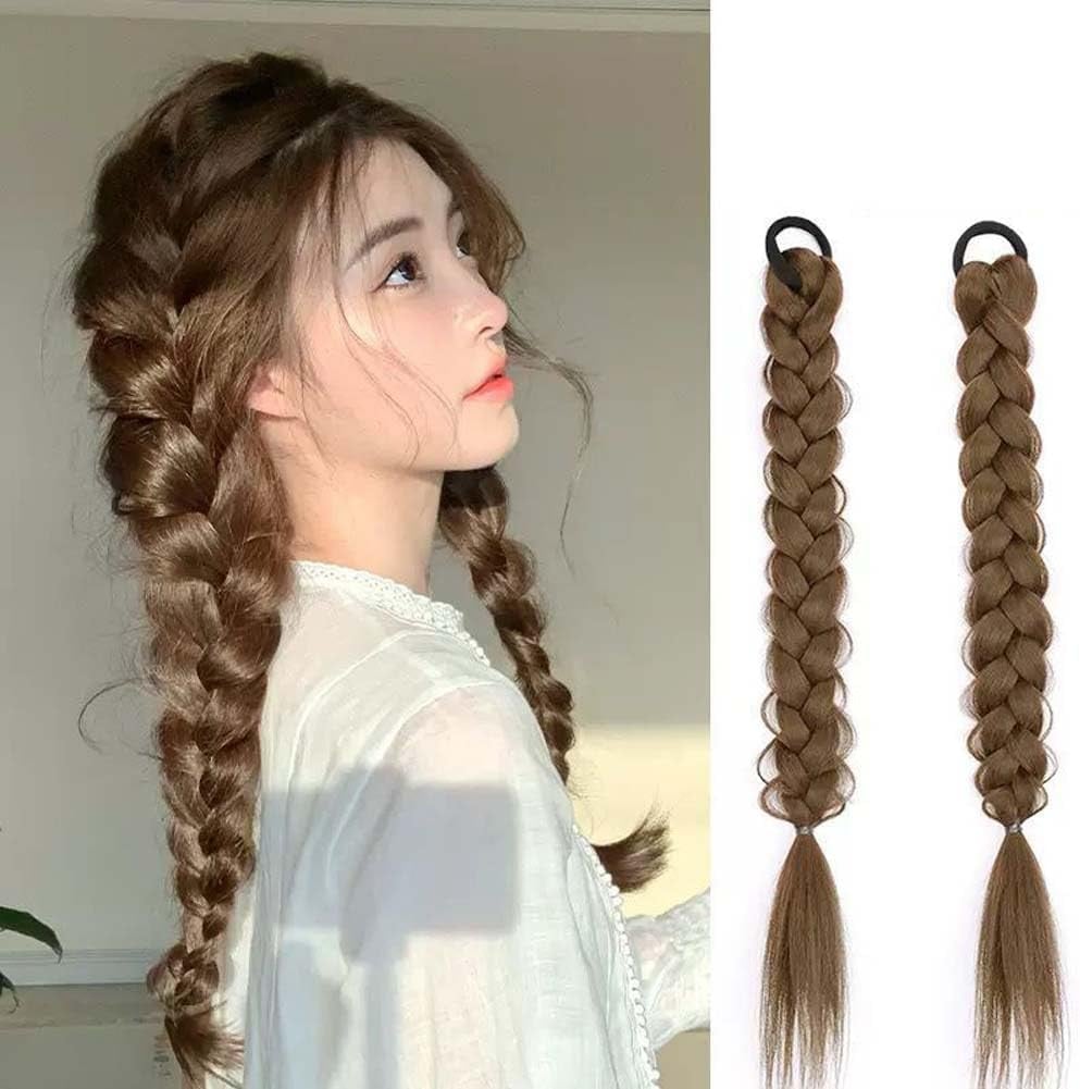 2Pcs Braided Ponytail Extensions with Hair Ties Soft Synthetic Hair Pieces for W