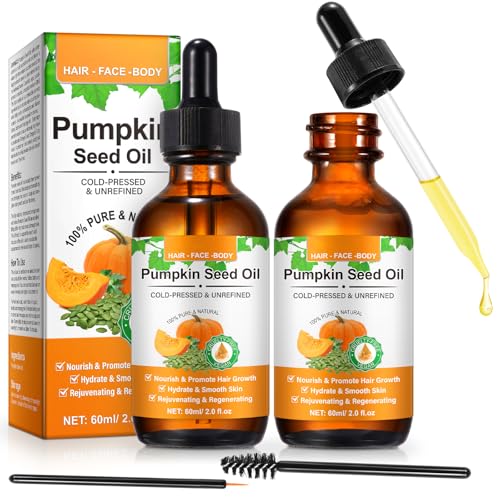 Pumpkin Seed Oil for Hair Growth 60ML 2 Bottle- 100% Pure Natural Cold Pressed Hair Growth Oil for Dry Damaged Hair, Strengthen Hair Thickness, Nourish Hair Scalp, Moisturizer Skin.