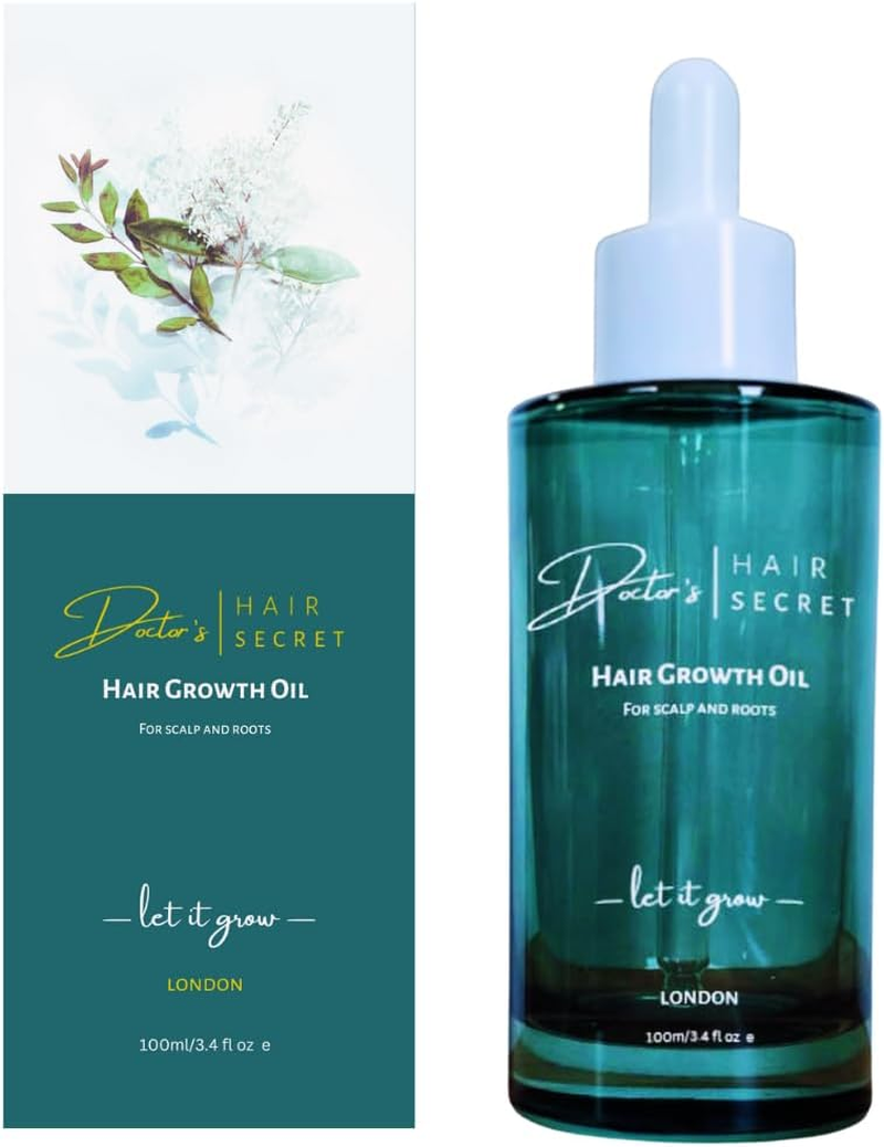 Doctor's Secret Hair Growth Oil with Rosemary, Peppermint, Caffeine, Lavender, Castor, Rosehip and Sweet Almond Oils. 100% Natural Vegan, Doctor Formulated For Thinning Hair (100ml)