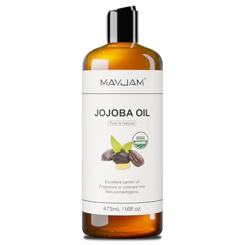 MAYJAM Organic Jojoba Oil, Cold Pressed Unrefined Natural Hair Growth Oil - 473ML, for Hair, Face Body, Ear Stretch, Nails, Deeply Moisturizing for Essential Oils Mixing
