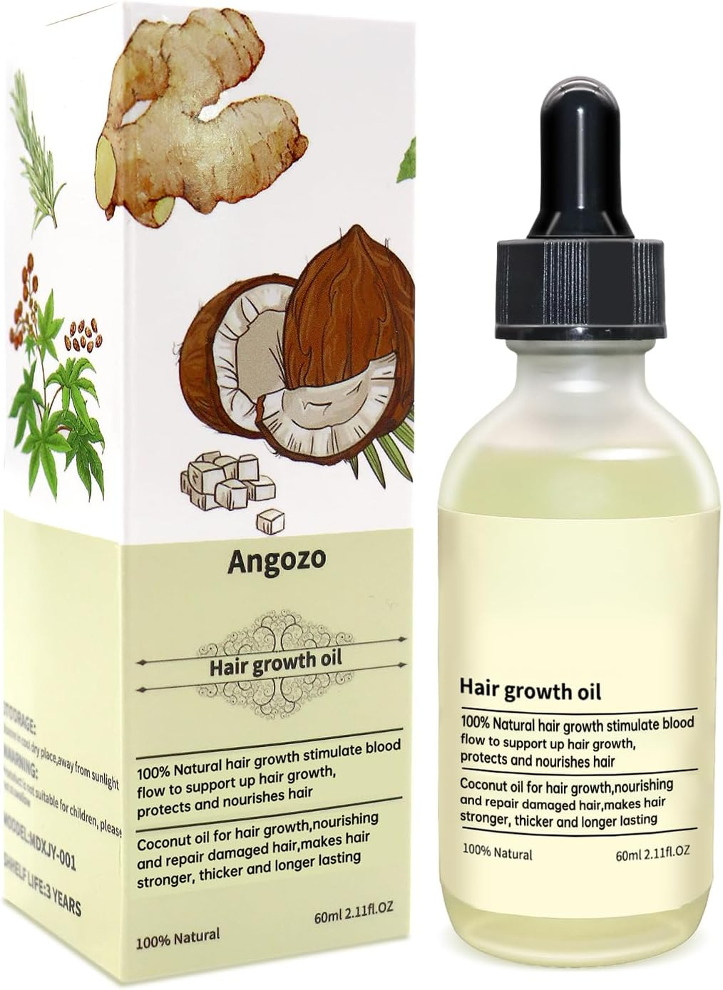 Hair Growth Oil 100% Natural Hair Oil with Caffeine, Biotin, Castor Oil, Argan Oil, Coconut Oil, and Rosemary Oil Effective Thickening Mask & Hair Loss Treatment