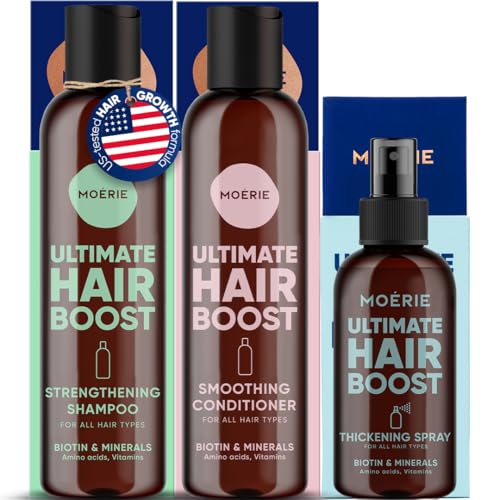 Moerie Hair Growth Shampoo, Conditioner and Spray for Men and Women, Hair Loss Solution with Biotin and Rosemary, Thickening Hair Regrowth Set with Serum Level Care for Thinning Hair