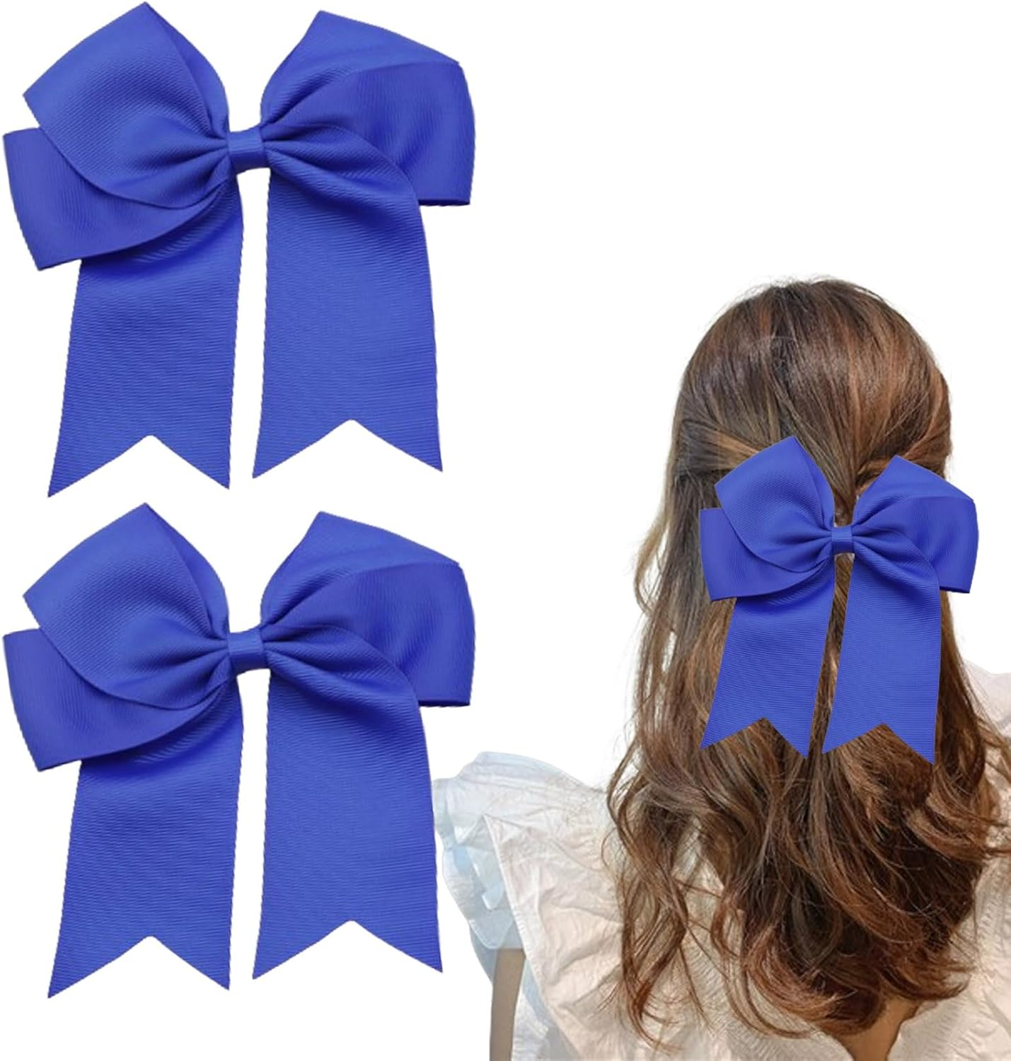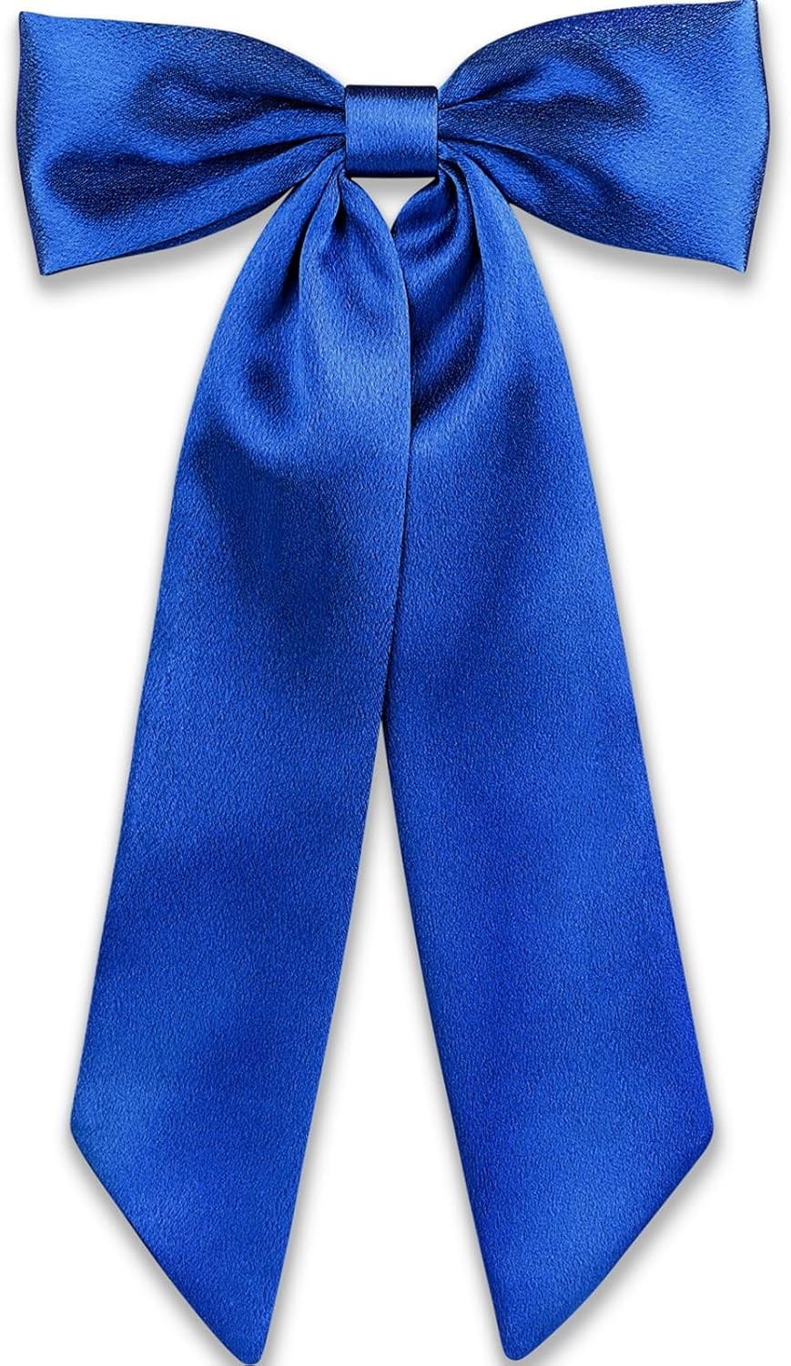 Yurosiay Hair Clips Bow Women's Large Hair Bows Vintage French Long Satin Ribbon Hair Clip Bow Plain Bow Hair Pin Hair Bows Clip Hair Accessories Bow Royal Blue