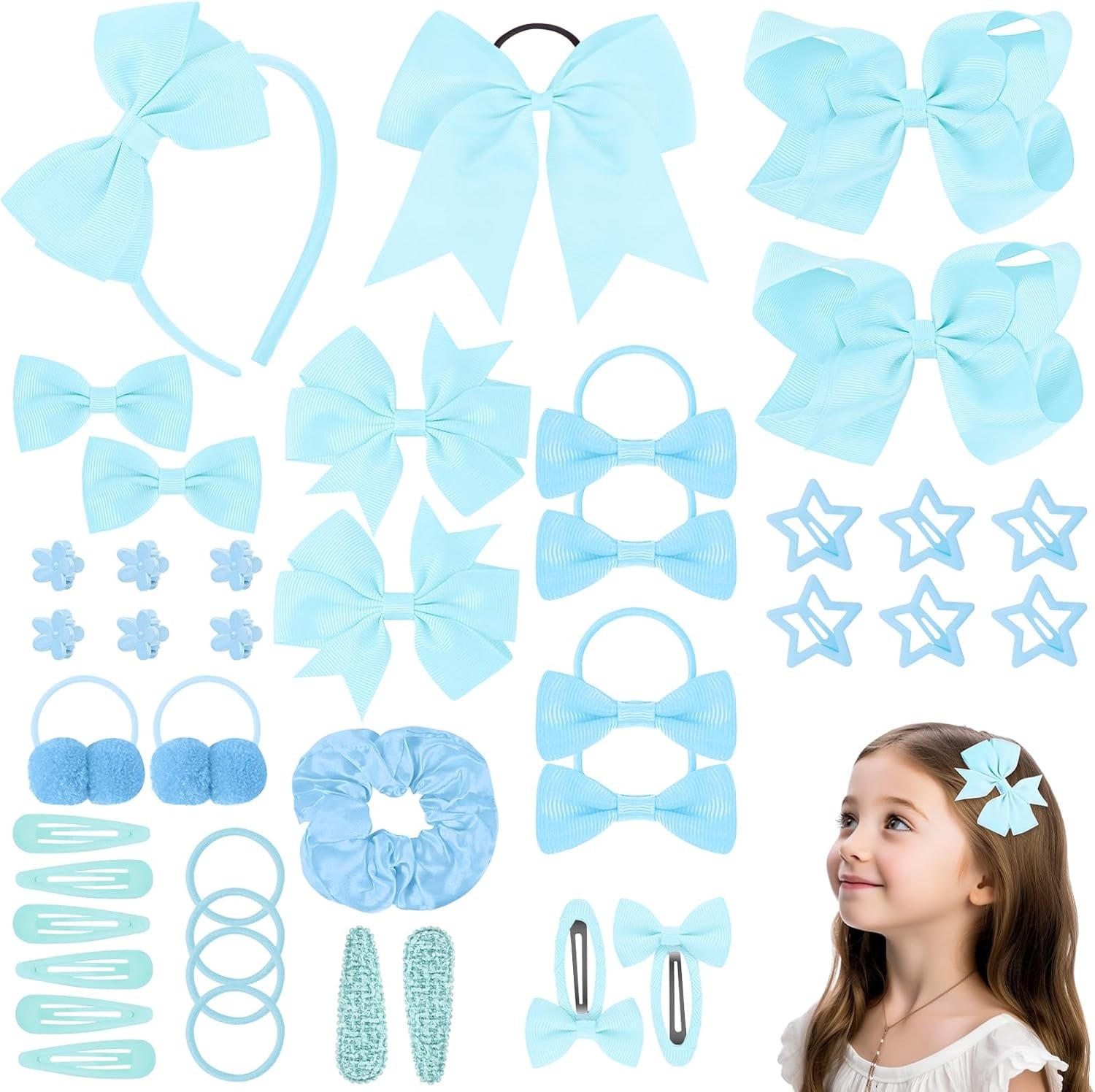 36Pcs Baby Girl Hair Clips Cute Hair Bows Baby Elastic Ties Hair Accessories