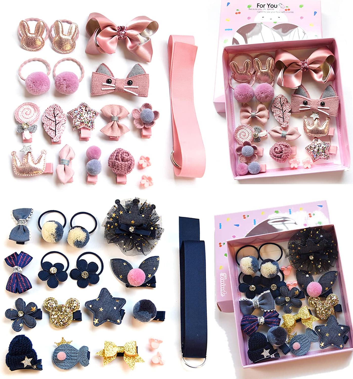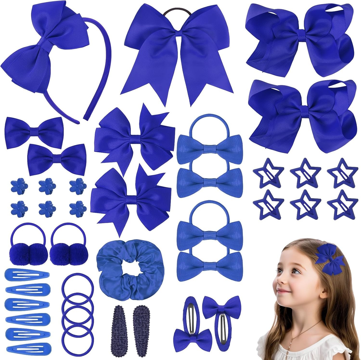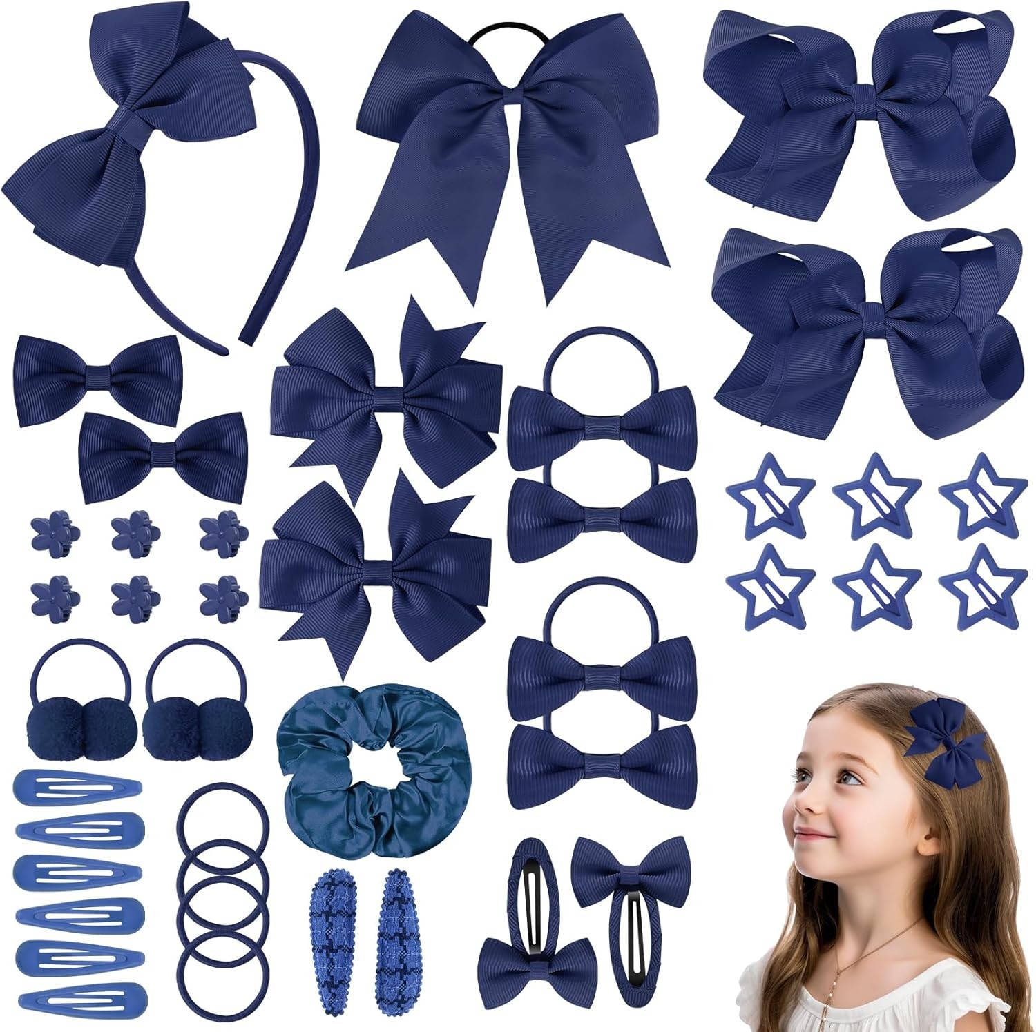 LOPHE 77Pcs Navy Blue Girls School Hair Accessories Kit, Hair Bows Elastic Head