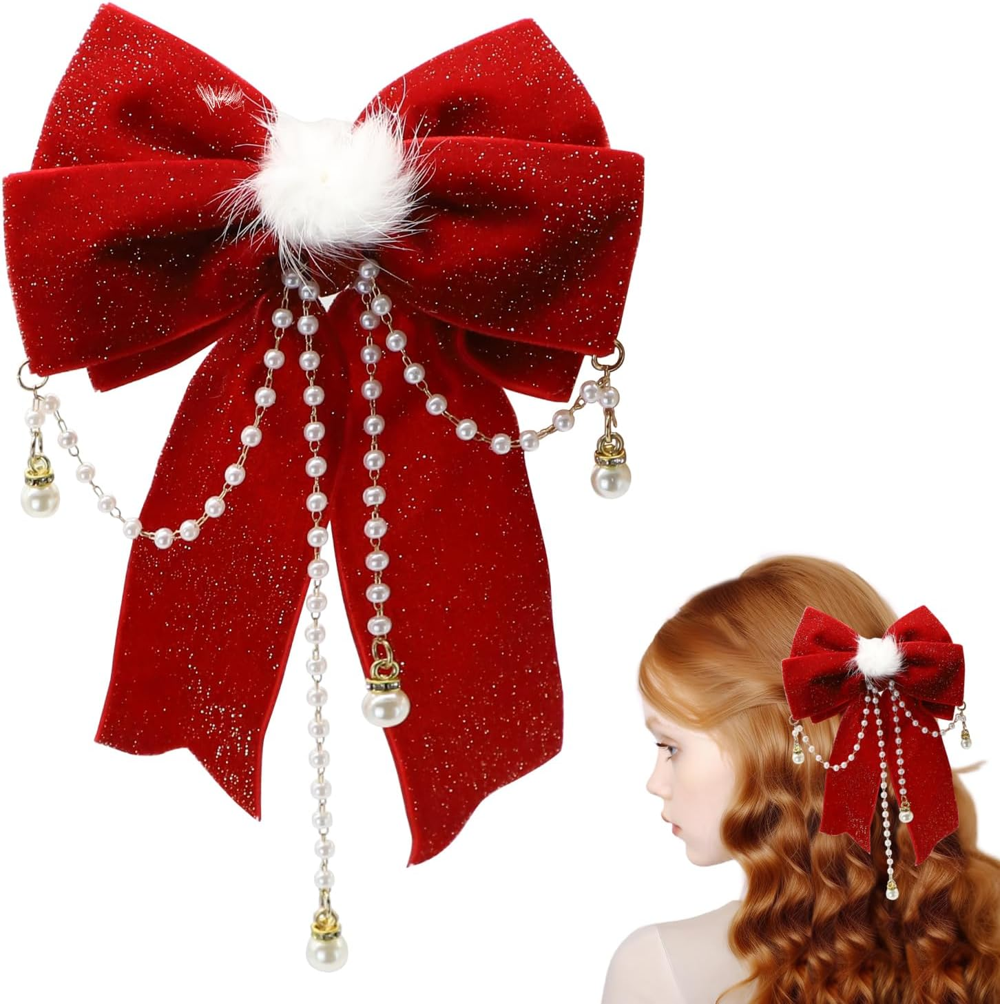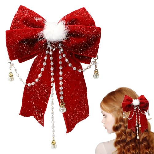 Bow Hair Clip, Large Red Hair Bows Hair Barrette Clips for Women Glitter Pearl Bowknot Hairpin Vintage Velvet Barrettes Hair Styling Accessories for Women Girls Birthday Christmas Party Gifts Y7MQZZFJ