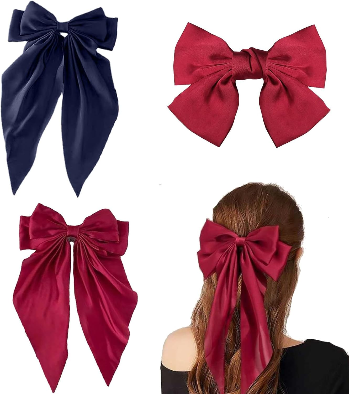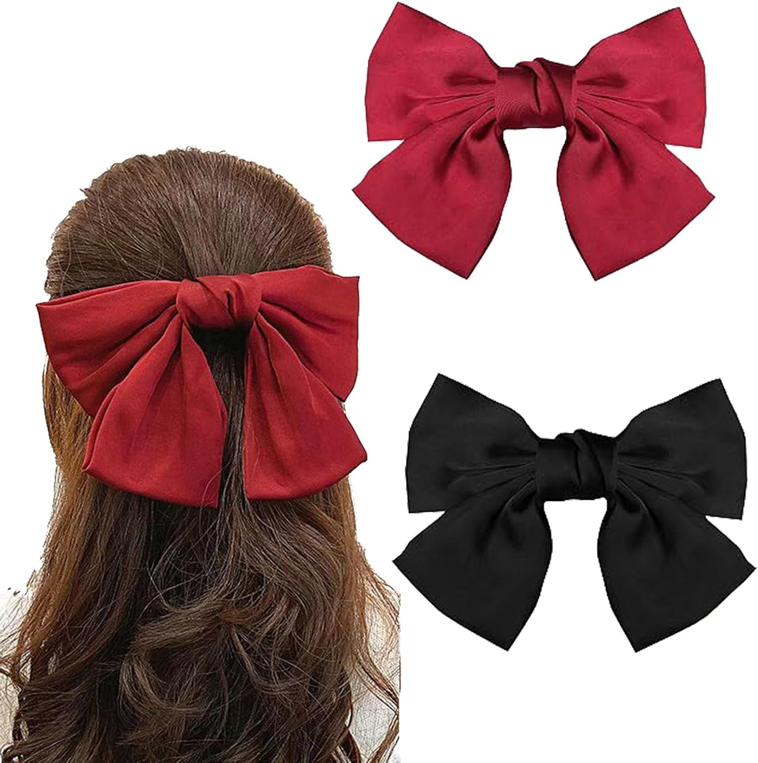 3 PCS Big Bow Hair Clips, Large Bowknot Hairpin French Hair Clips Red Hair Bows