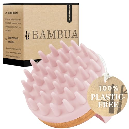 BAMBUA® Scalp Massager Hair Growth - (Anti-Dandruff Effect) Natural Head Massager Scalp Brush for Relaxation, Hair Care & Scalp Health - Shampoo Brush for Shower Use - Premium Scalp Scrubber (Pink)