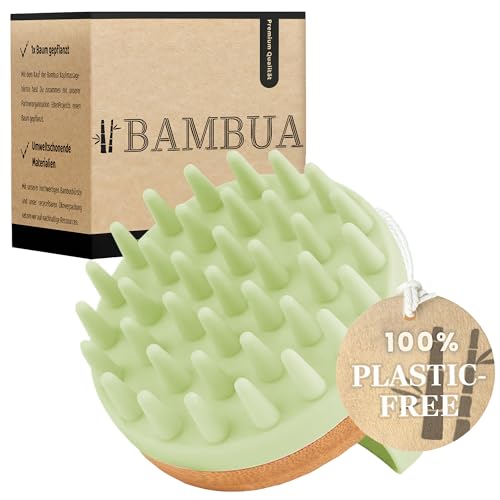 BAMBUA® Scalp Massager Hair Growth - (Anti-Dandruff Effect) Natural Head Massager Scalp Brush for Relaxation, Hair Care & Scalp Health - Shampoo Brush for Shower Use - Premium Scalp Scrubber (Green)