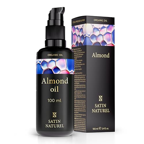 Satin Naturel Organic Almond Oil 100ml – Cold-Pressed Vegan Skincare Rich in Vitamins – 100% Pure Natural Oil for Soft Skin, Hair & Nails – Glass Bottle