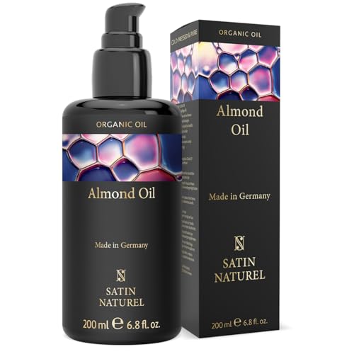 Satin Naturel Organic Almond Oil 200ml – Cold-Pressed, 100% Pure & Natural – Rich in Vitamins for Skin, Hair & Nails – Vegan Natural Cosmetic in Glass Bottle