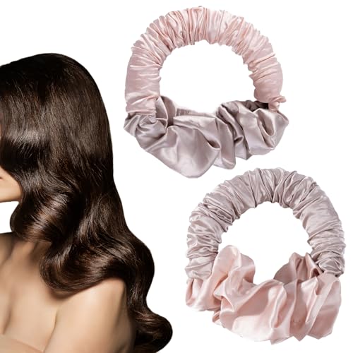 Heatless Hair Curler for Overnight Curls, Soft Satin Curling Scrunchies for Long Hair, No Heat Hair Styling Accessories, 2PCS Elastic Hair Rollers for Natural Waves