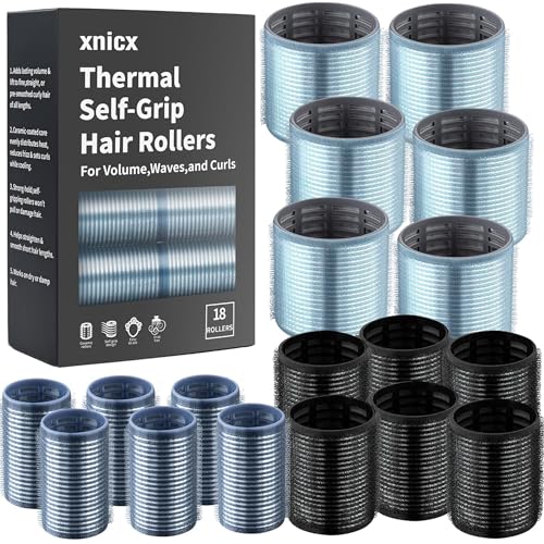 xnicx 18pcs Hair Roller Set Hair Curlers,Self-Grip Ceramic Ionic Thermal Rollers,Velcro Rollers Curlers to Sleep In for Hair Blowout Look,Salon Quality Hair Rollers for Long Short Hair