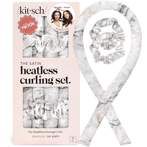 Kitsch Satin Heatless Curling Set - Hair Rollers for Heatless Curls | Heatless Hair Curlers & Hot Rollers | Hair Curlers to Sleep in | Heatless Curling Rod Headband | Heatless Curler (Marble)