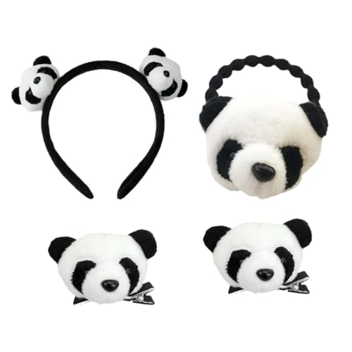 Parliky 4PCS Lovely Panda Hair Accessories Set for – Cute Animal Headband, Hairpin Clips, and Elastic Hair Scrunchie – Cartoon Style Hairband for Daily Wear and Photo Props