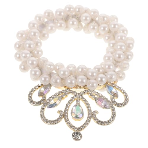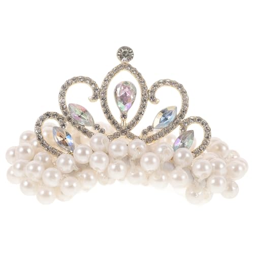 jojofuny Pearl Beaded Elastic Hair Tie with Princess Crown Design Ponytail Scrunchie Hair Accessory for ’s Tiara for Daily Wear and Parties