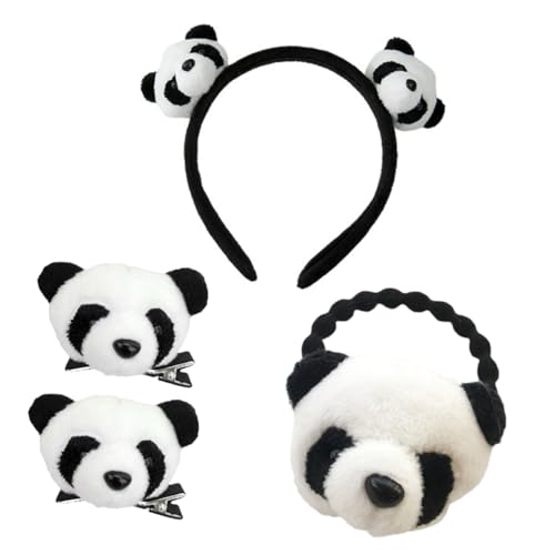 jojofuny 4PCS Panda Hair Accessories Set Headband, Hair Clips, and Scrunchie Cute Animal Design for Daily Wear and Party Use