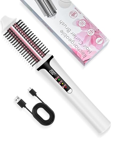 Curling Iron Brush | Rechargeable 2600mAh 35W Cordless Styling Tool for Home, 7.4V Hair Straightener Brush for Salon Apartment Beauty Hairdressing Dormitory Travel Vacation