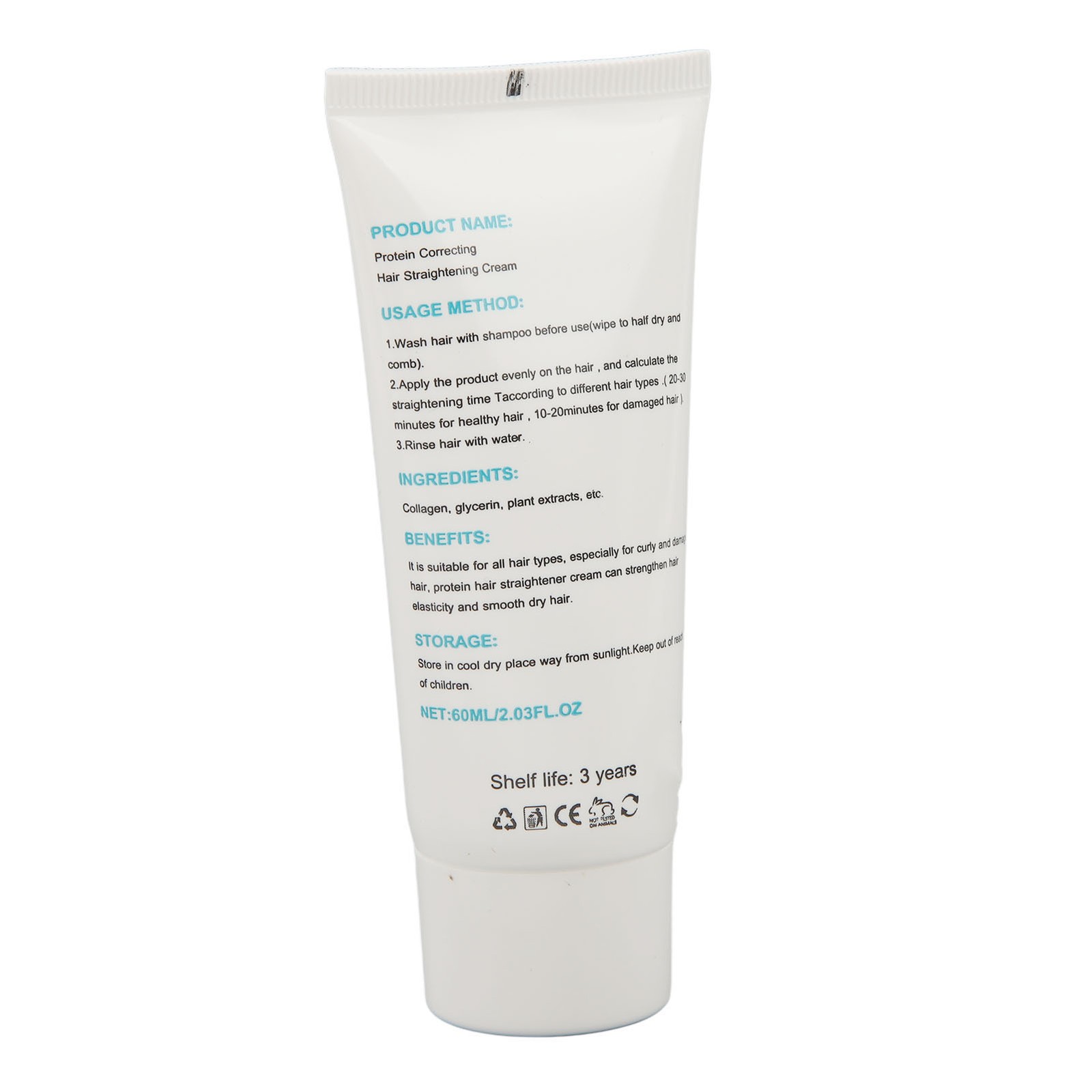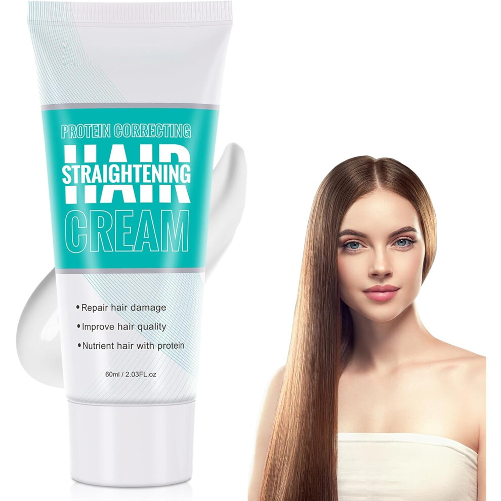 (60ml) Protein correction hair straightening cream, smoothes frizz and split ends, repairs damaged hair, no-stretch hair straightening cream