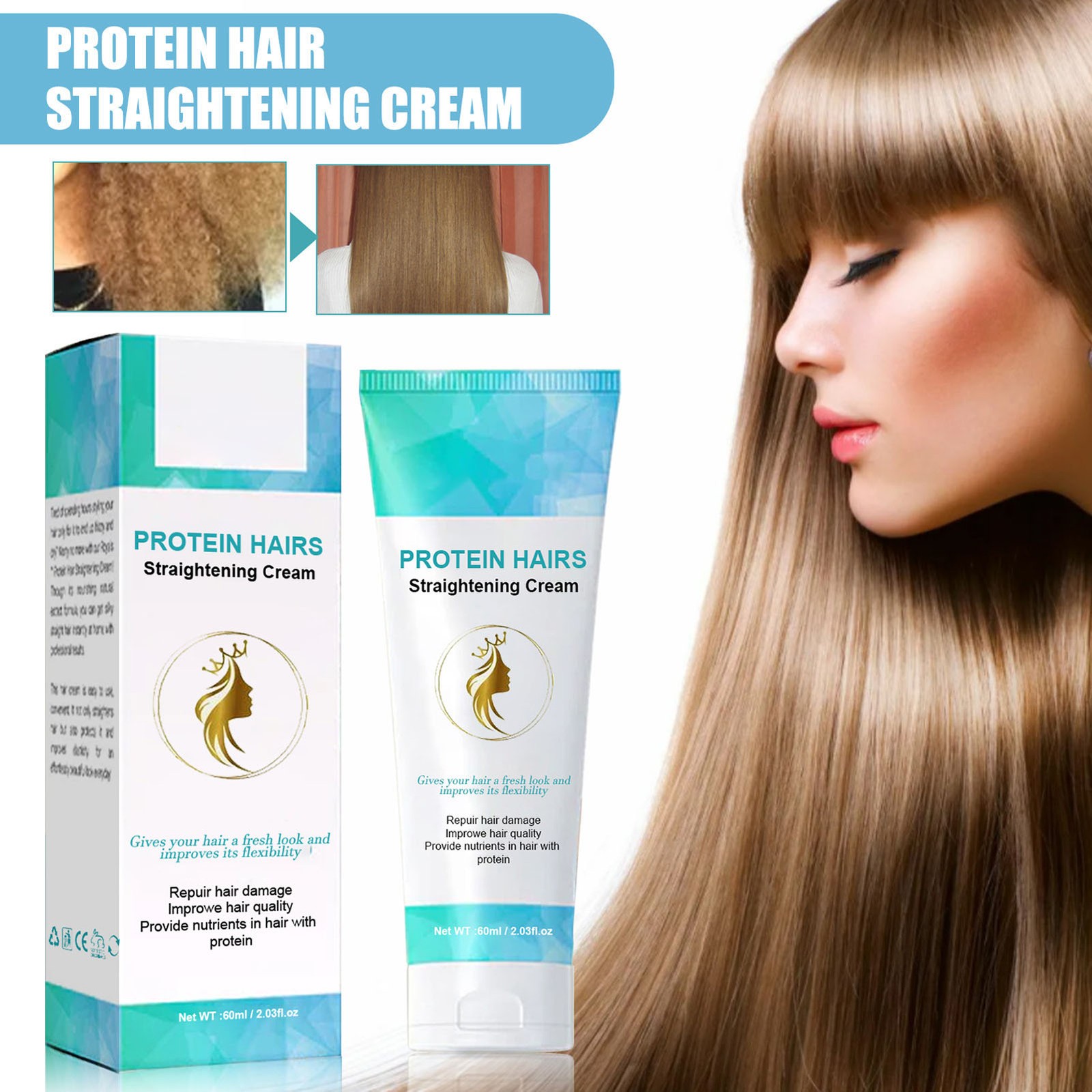 60ml Protein Straight Hair Cream Long lasting Protein Hair Straightening Cream For Repairing Damaged Dry Hair