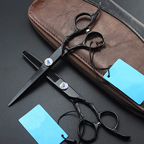 YRRYGMN 6inch Professional 440c 9cr13 Dragon Handle Hair Scissors Cutting Barber Haircut thinning Shears Hairdressing Scissors Set (Color : Set)