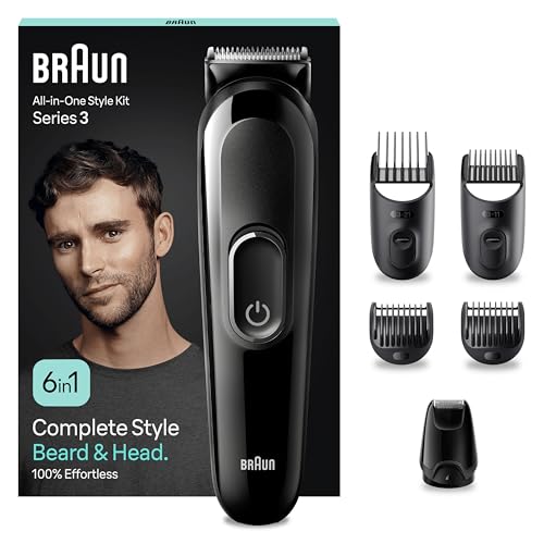 Braun 6-in1 All-in-One Style Kit Series 3, Male Grooming Kit with Beard Trimmer, Hair Clippers & Precision Trimmer, with Lifetime Sharp Blades, Gifts for Men, UK 2 Pin Plug, MGK3420, Black