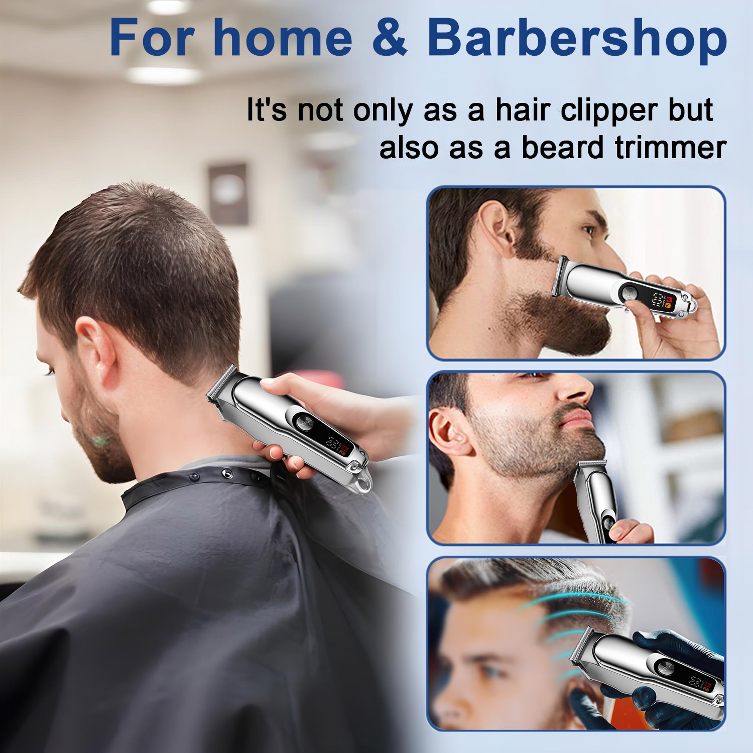 Rechargeable Beard Trimmer Cordless Electric Stubble Hair Trimmer LED Display UK