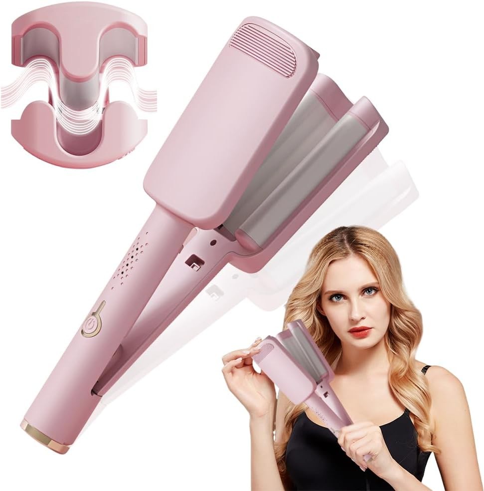 Electronic shop 3-Barrel Ceramic Hair Curler & Waver Iron - Fast-Heating Beachy Curls, Crimp Option, Dual-Voltage Pink