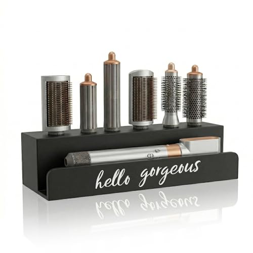 Storage Holder for Hair Wrap, Farmhouse Curling Iron Accessories Rack Wall Mount, Wood Hair Wrap Styler Tools Holder, Vacuum Attachments Display Stand for Bathroom Organizer (Black)