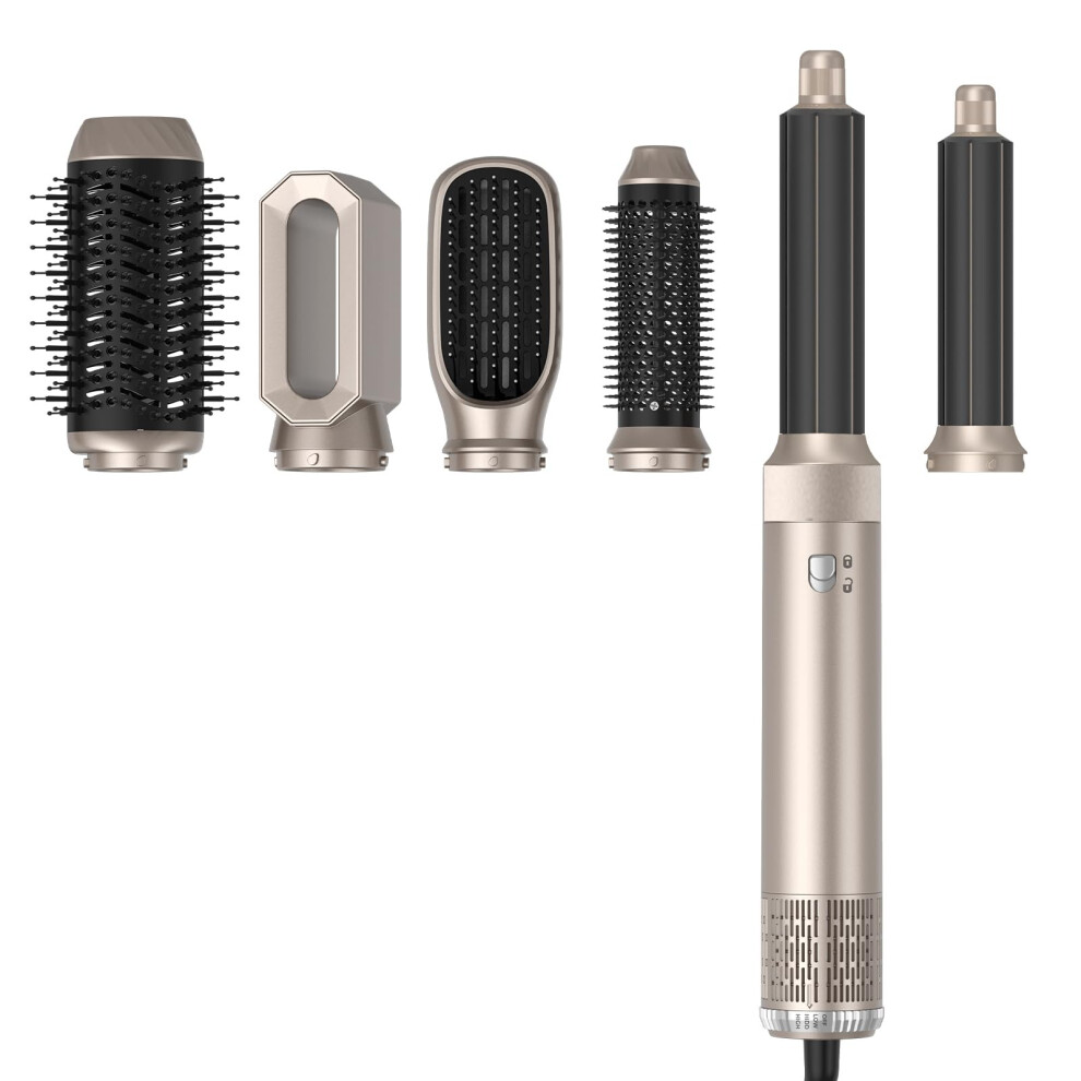 6 in 1 Hair Dryer Brush Styler with AutoWrap Curling, Negative Ion Frizz Control, Champagne Gold