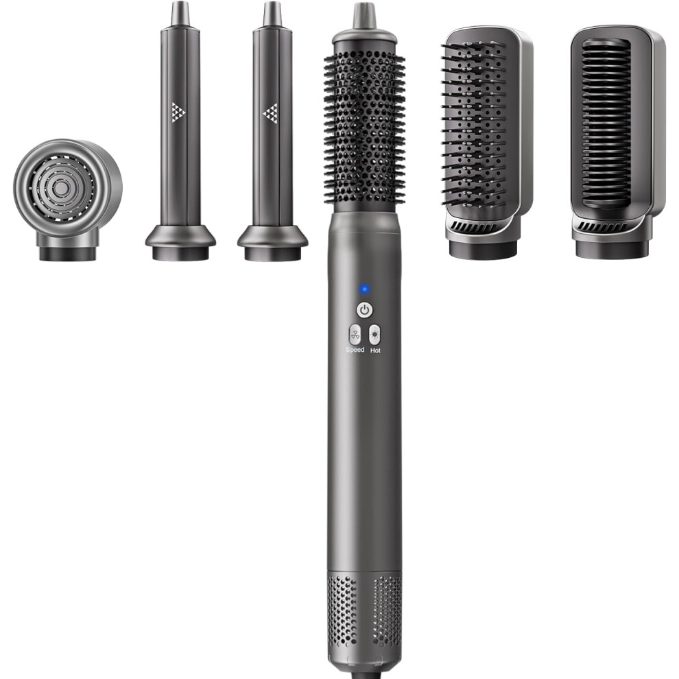 6 in 1 Hot Air Brush Styler with Auto Wrap Curl Tech, Ionic Hair Dryer Brush for Curling and Straightening