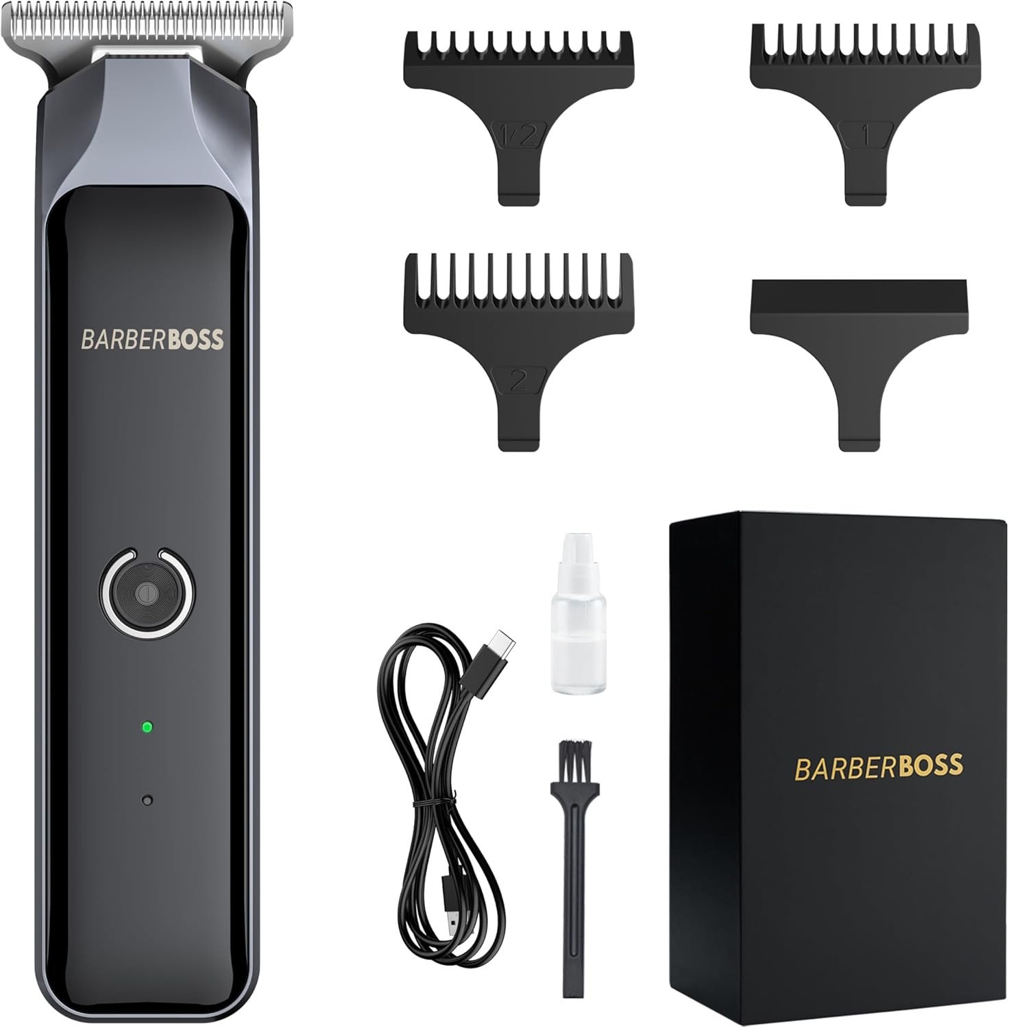 Barberboss Beard Trimmer Men Cordless Hair Clippers Men, Men Haircut Clippers, Hair Trimmer Men with 4 Guide Combs, Mens Grooming Kits QR-2071, Black
