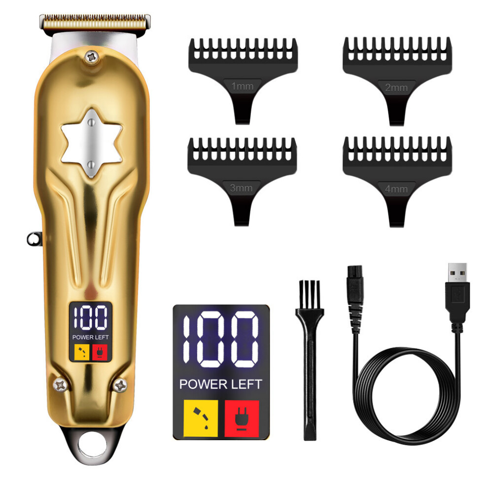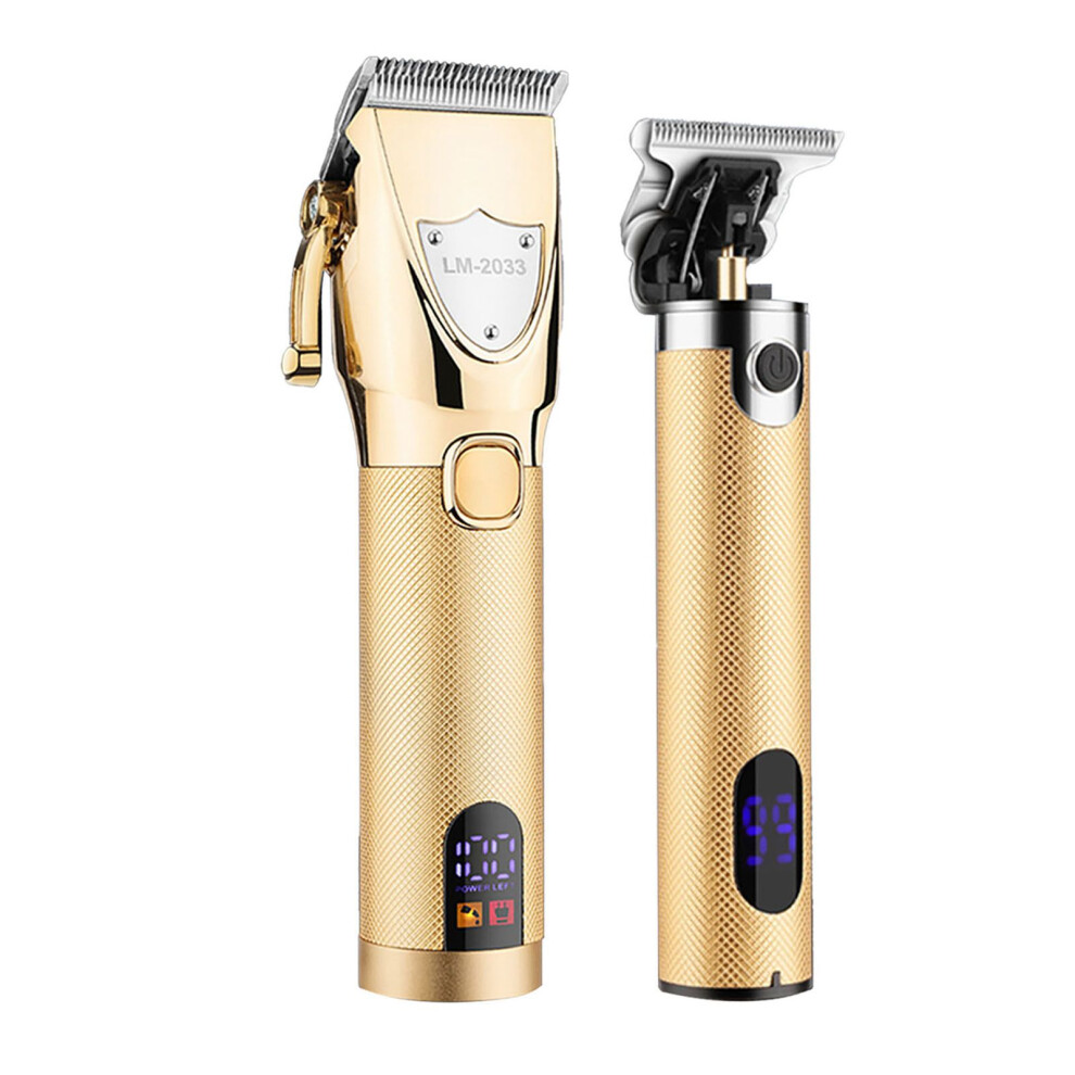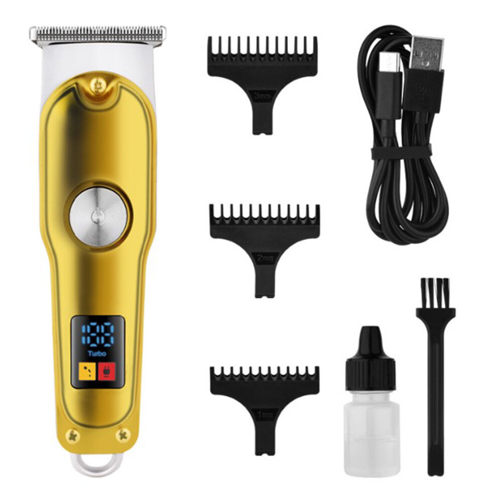 (golden) Men Hair Clippers Cordless Barber Hair Cutting Machine Kit Haircut Grooming Set LEDs Digital Display Built-in High Capacity Rechargeable Cell