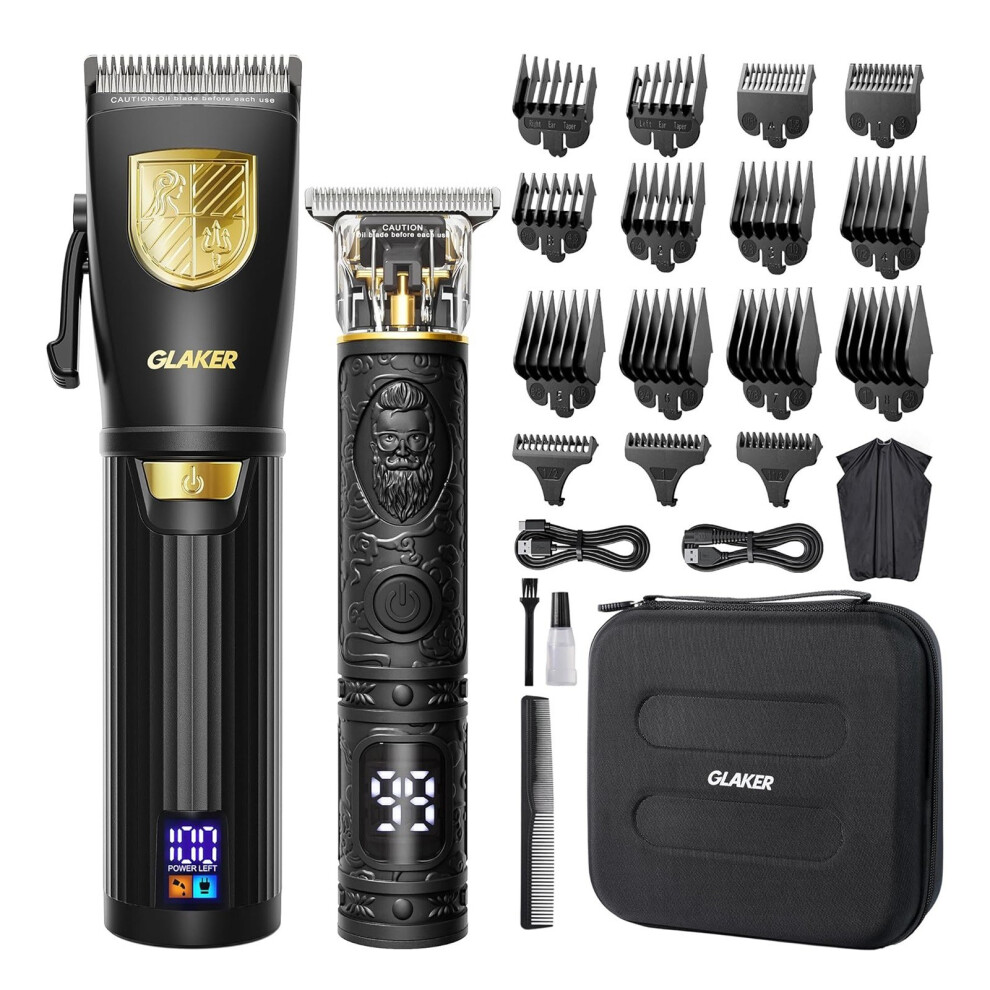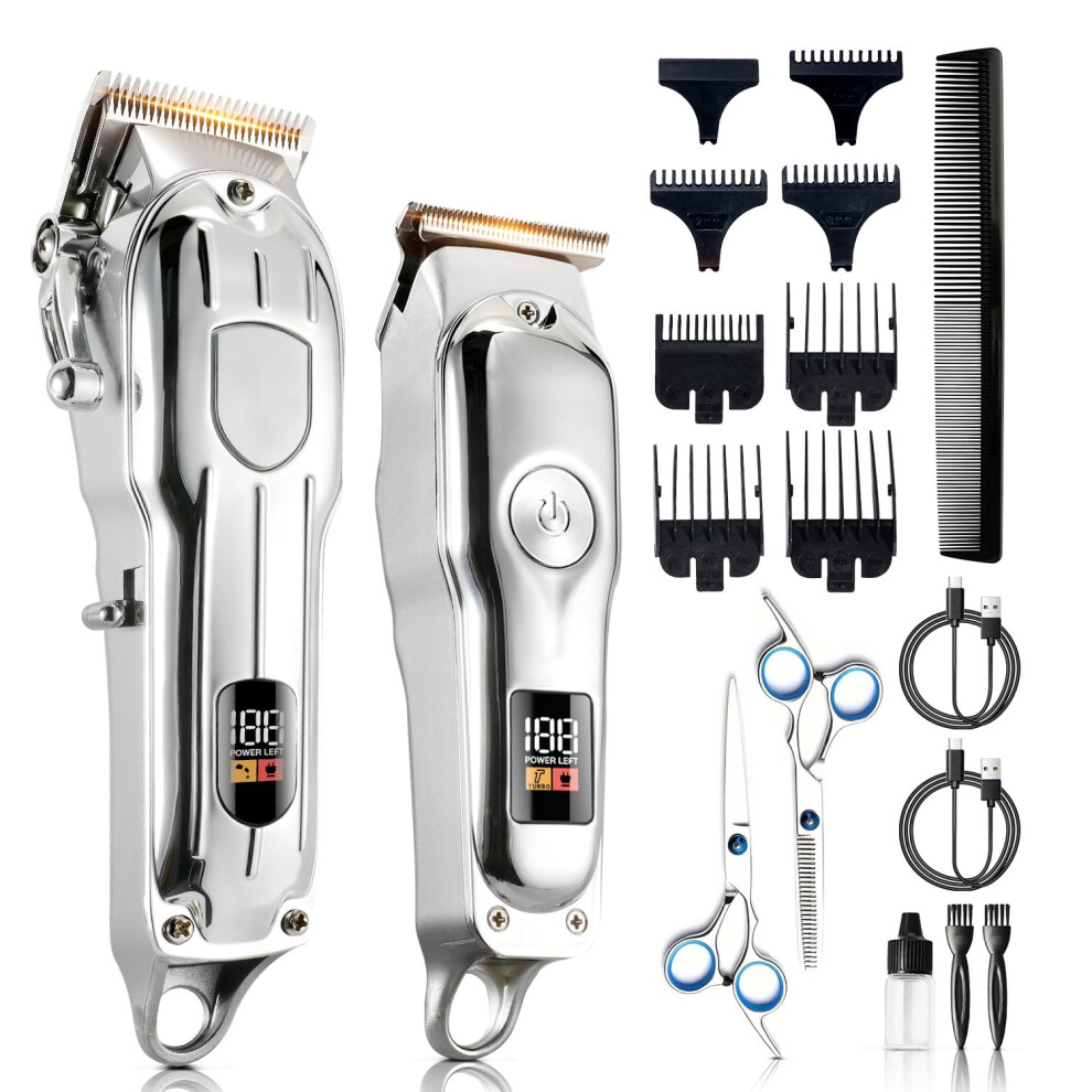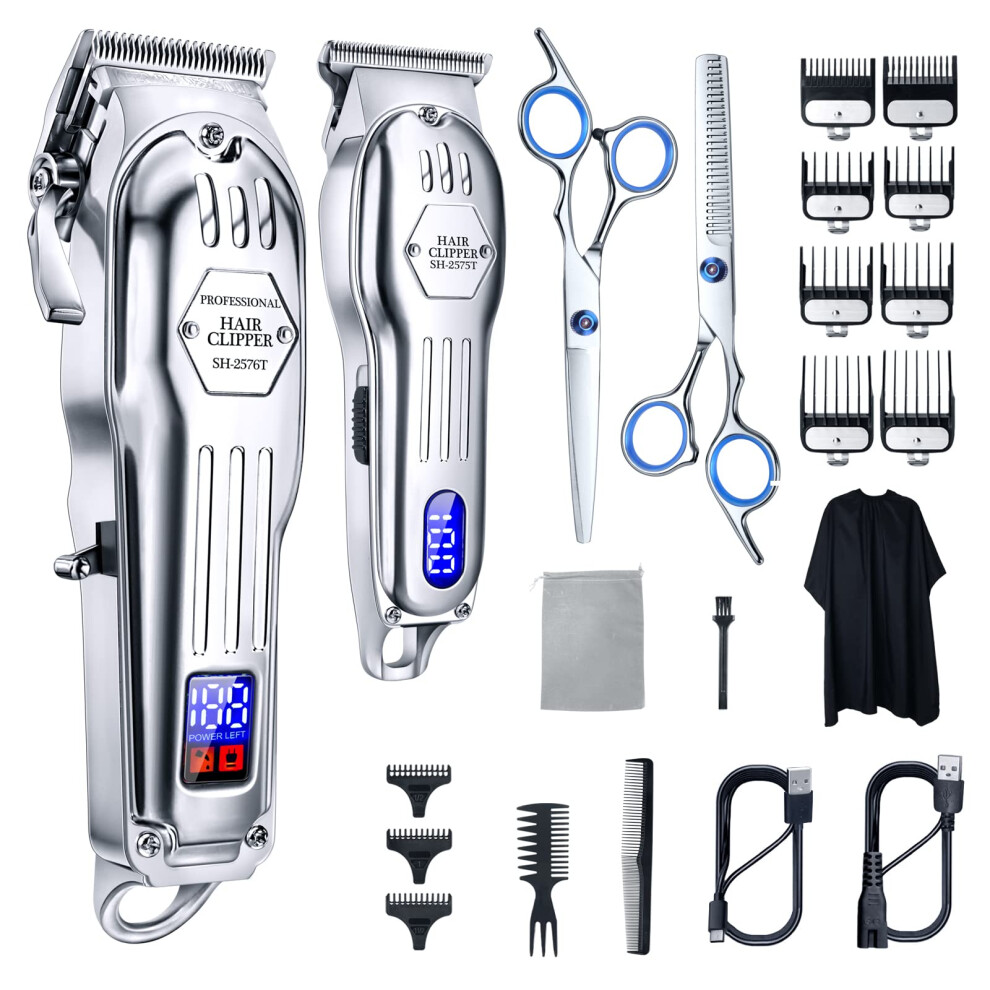 KIKIDO SH-2576T Professional Cordless Hair Clippers & Trimmer Set - All-Metal, Wireless with LCD Battery Display, Rechargeable Haircut Kit for Men