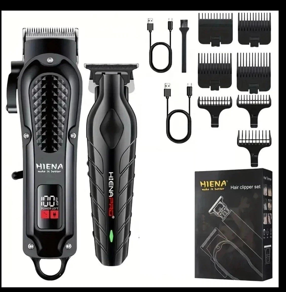Hiena Professional Hair Clippers and Trimmer Set Cordless Men Barber Haircut Kit