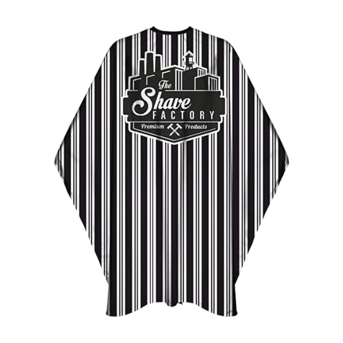The Shave Factory Barber Capes Hairdressing Cape, Water-Repellent and Easy to Clean, Perfect for Hairdressers and Barber Shops 150 x 160 cm, Black and White Stripes, 150x160CM