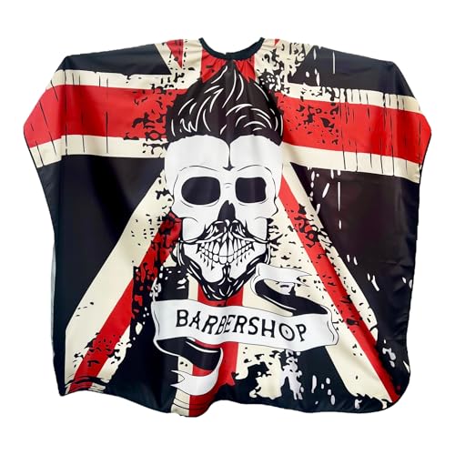 Gabri Professional Barber Cape Gown - Premium Hairdressing Cape for Hair Salon - Waterproof Hair Cutting Capes and Gowns for Barber Shops 160cm (L) x 140cm (W)) (British Flag Union Jack Skull)