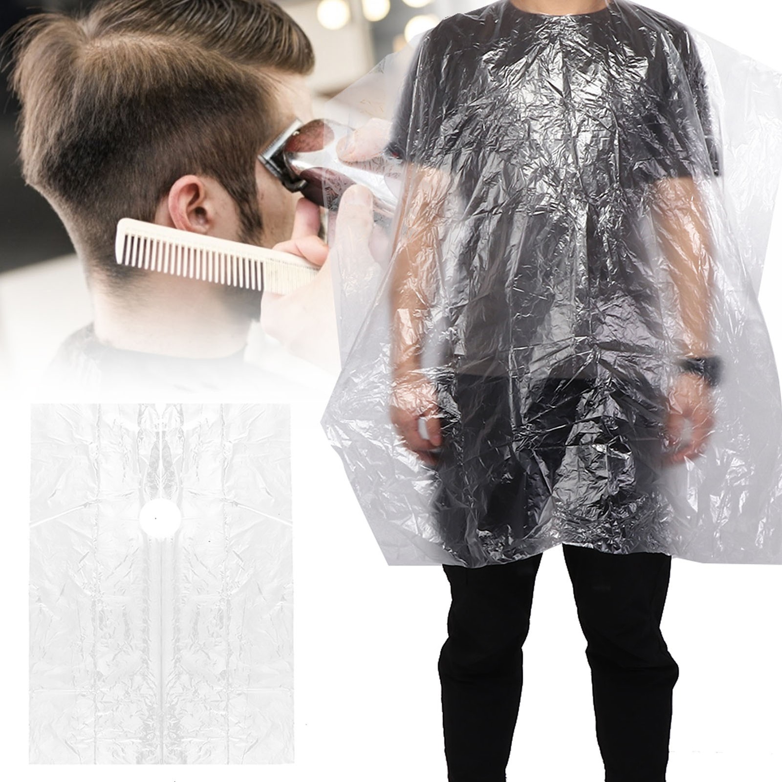 100 PCS Hairdressing Cape 35.5''x51.2'' Disposable Barber Hair Cutting Aprons Shampoo Cape Transparent Waterproof Barber Haircut Gowns